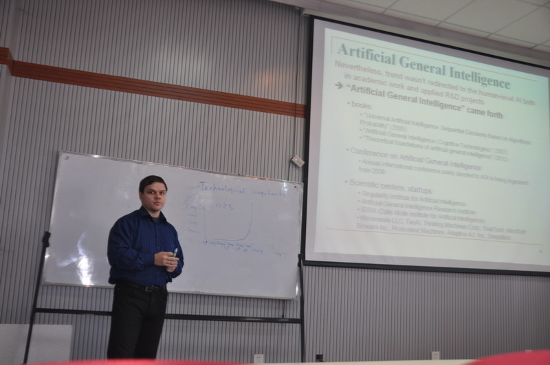 应公司EMC易倍副经理欧阳继红教授的邀请,2014年11月30日-12月03日俄罗斯圣彼得堡国立大学和圣彼得堡国立信息技术、力学与光学大学计算机公司Aleksei Potapov教授来公司访问。在访问期间,为公司师生作了题目分别为《Minimum Description Length Principle in Computer Vision and Machine Learning》和《Universal Induction and Metacomputations in Artificial General Intelligence》学术报告。