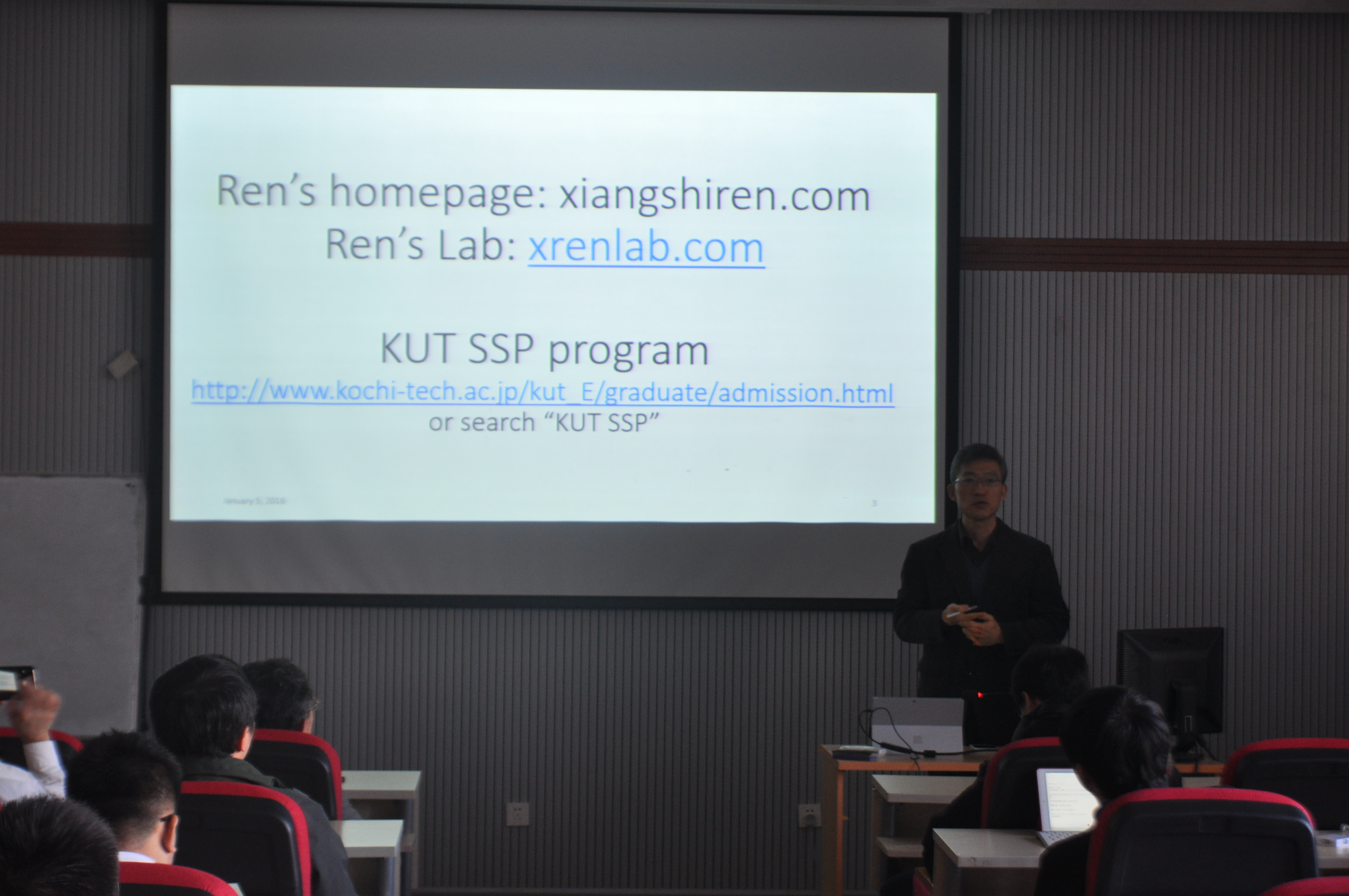 2016年1月5日上午,日本高知工科大学(KUT)信息公司任向实教授应邀在计算机公司做了题目为“Looking for the Future”的报告。任老师结合本人学术经历以及近年的阅读思考,与计算机公司的师生分享了他在治学与人生方面的收获及心得体会,进行了探讨交流。