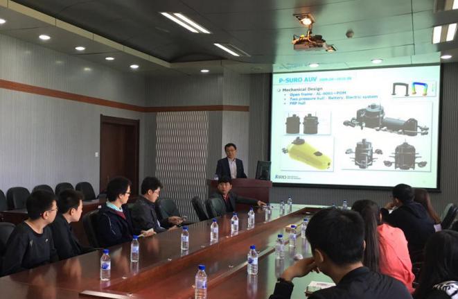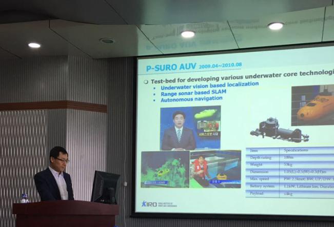 首先,李继红博士从水下机器人的应用、面临挑战、研究现状及未来研究方向的展望几方面入手,结合他本人在韩国研究所现在所研究的水下机器人项目,辅以图片及水下机器人视频实例,对水下机器人的型号、软硬件技术和创新点作详细的讲解。而后,李继红博士与EMC易倍刘军教授就水下机器人的实用性、技术创新以及水下机器人怎样与公司智慧海洋科学与技术研究中心的水声通信网络技术结合以提高机器人的水下定位问题进行进一步的讨论。这次报告会不仅开阔了同学们在国际上的视野,为今后的研究提供了信的想法,同时老师们之间的交流也将为公司带来更多国际化的合作。