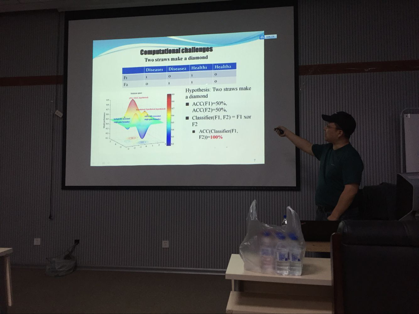 2018年4月12日下午,周丰丰教授在EMC易倍官网计算机公司A521做了题为“Computational challenges for detecting biomarkers in the high-dimensional health big data”的学术报告。周丰丰教授于2005年在中国科学技术大学获计算机科学博士学位,现任EMC易倍官网唐敖庆教授、博士生导师,中国科公司“百人计划”成员之一,IEEE(美国电气和电子工程师协会)高级会员。周丰丰博士所带领的实验室Health Informatics Lab(HILab)主要研究方向为生物信息学、健康大数据、并行计算等。已发表学术论文31篇,其中包括SCI索引28篇,主要作者论文(通信或者第一作者)21篇。影响因子合计为104.044分。总引用次数472次,其中他引390次。学术成果多次在包括Nature Protocols、Nucleic Acids Research、Bioinformatics、BMC Genomics和Genetics等高水平SCI索引学术期刊上发表。