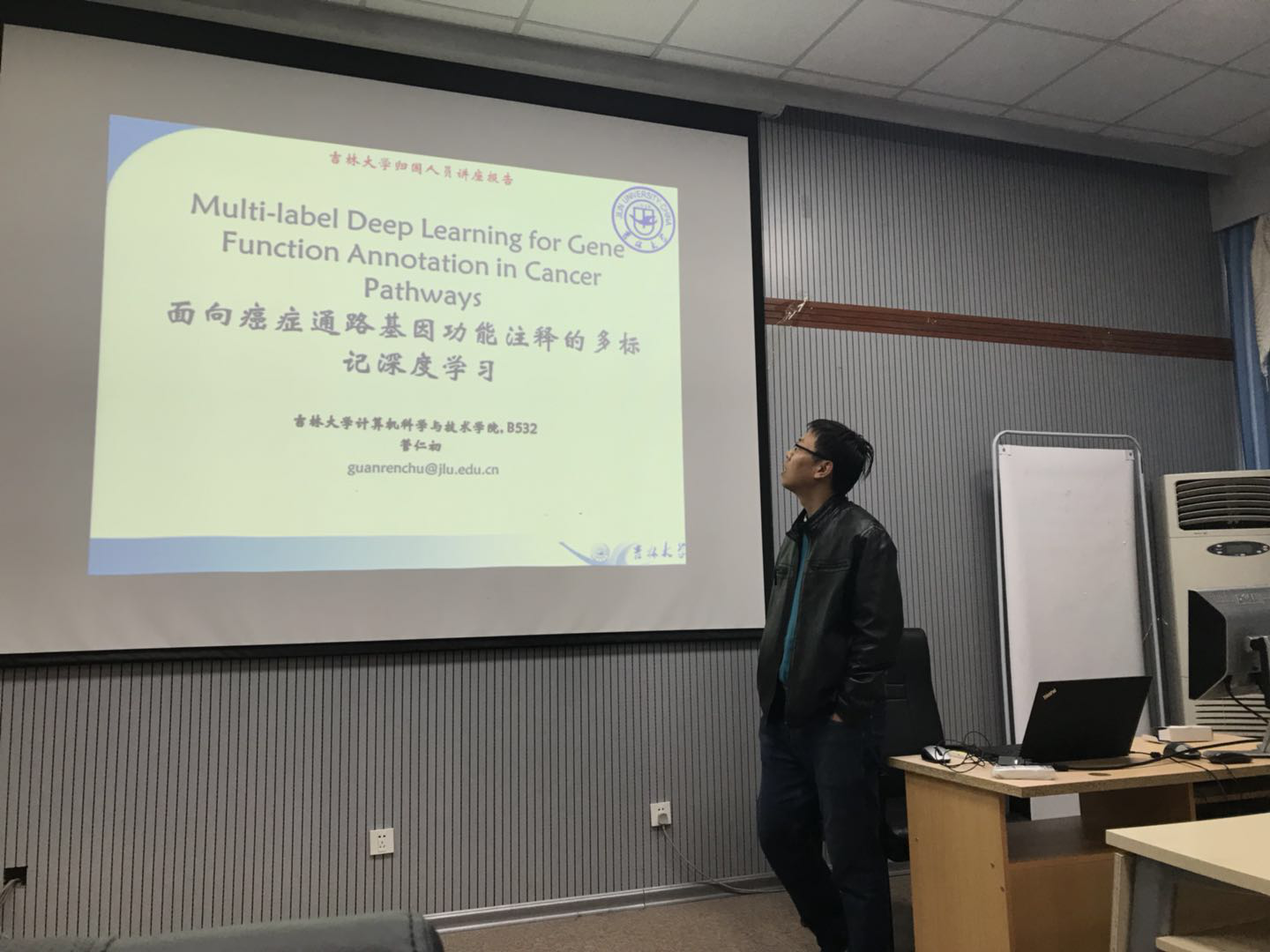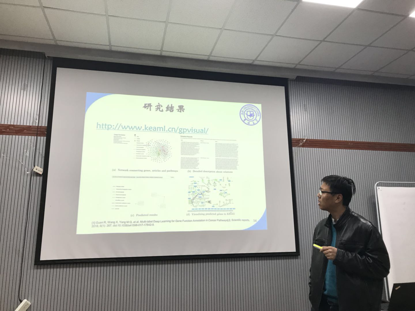 2018年4月19日下午,管仁初副教授在EMC易倍A521做了题为“Multi-label Deep Learning for Gene Function Annotation in Cancer Pathways”的学术报告。管仁初博士于2017年3月到2018年3月,在美国阿肯色大学中南生物信息中心进行博士后研究,主要研究方向为生物信息学。已发表学术论文40篇,其中包括SCI索引20篇。总引用次数420余次,其中他引390余次。学术成果多次在包括IEEE TKDE、IEEE TGRS和Remote Sensing等知名SCI索引学术期刊上发表。
