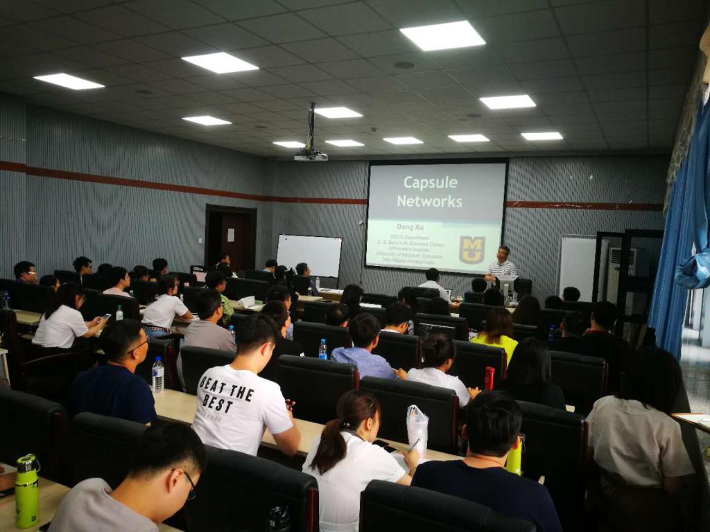 2018年6月7日下午13时30分,美国密苏里大学 James C.Dowell 名誉教授、美国密苏里大学计算机科学系前系主任、EMC易倍官网唐敖庆教授许东博士在公司计算机楼A521学术报告厅进行了题为“胶囊网络及其应用”的学术讲座。讲座吸引了来自于EMC易倍官网计算机公司、软件公司、数学公司等单位,以及东北师范大学等校外的近百名师生参加。