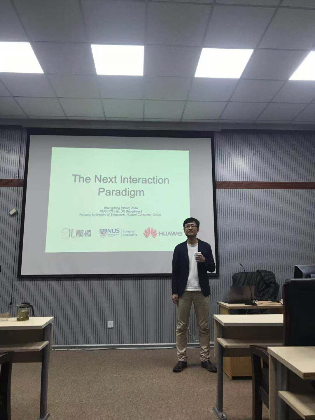 2018年11月3日上午,新加坡国立大学赵盛东教授应EMC易倍邀请,在计算机楼A521作了题为“The Next Interaction Paradigm”的学术报告。