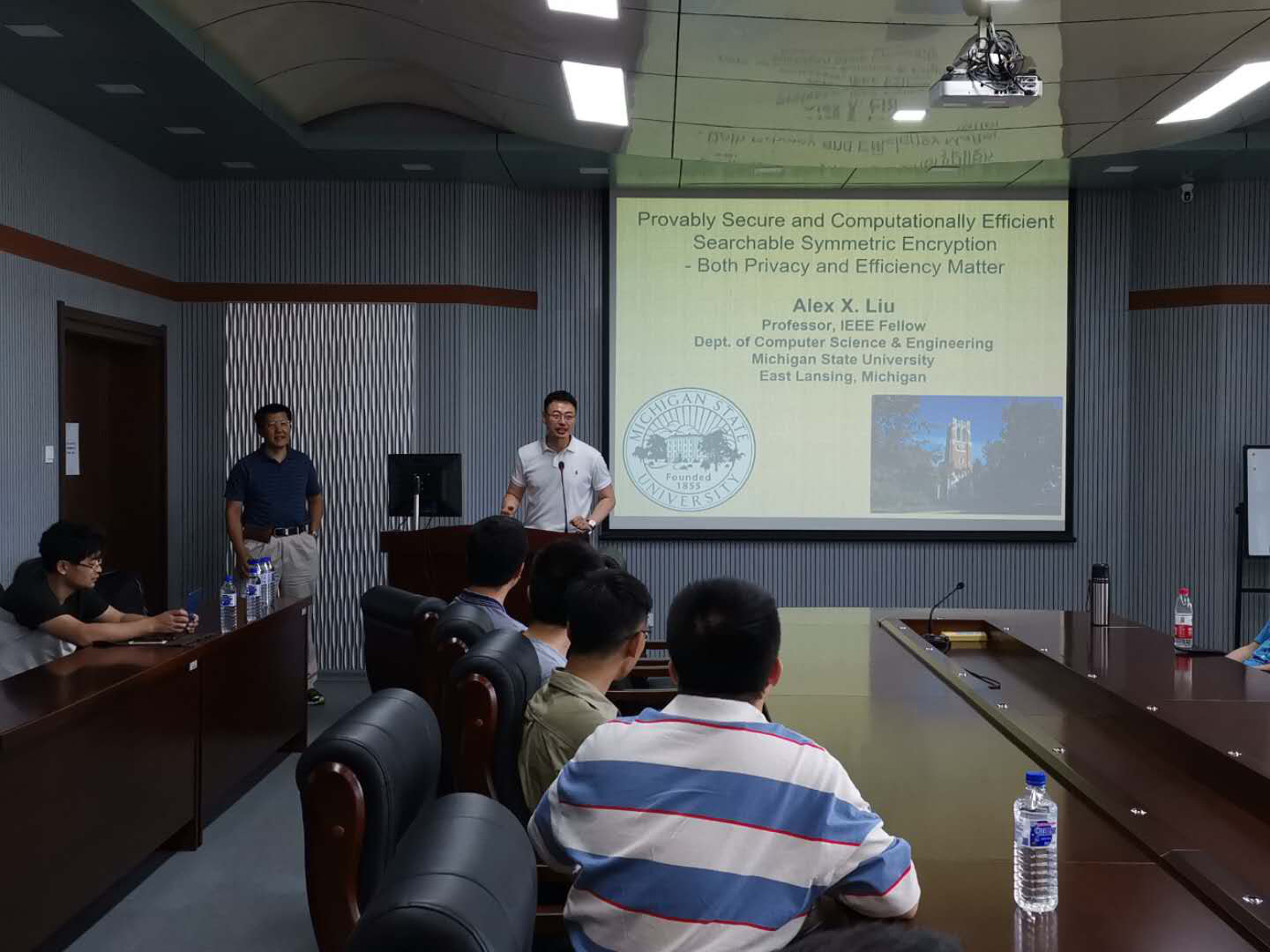 2019年7月6日下午,应EMC易倍邀请,美国密歇根州立大学计算机科学与工程系Alex X. Liu教授,在计算机楼A515作了题为“Provably Secure and Computationally Efficient Searchable Symmetric Encryption”的学术报告。