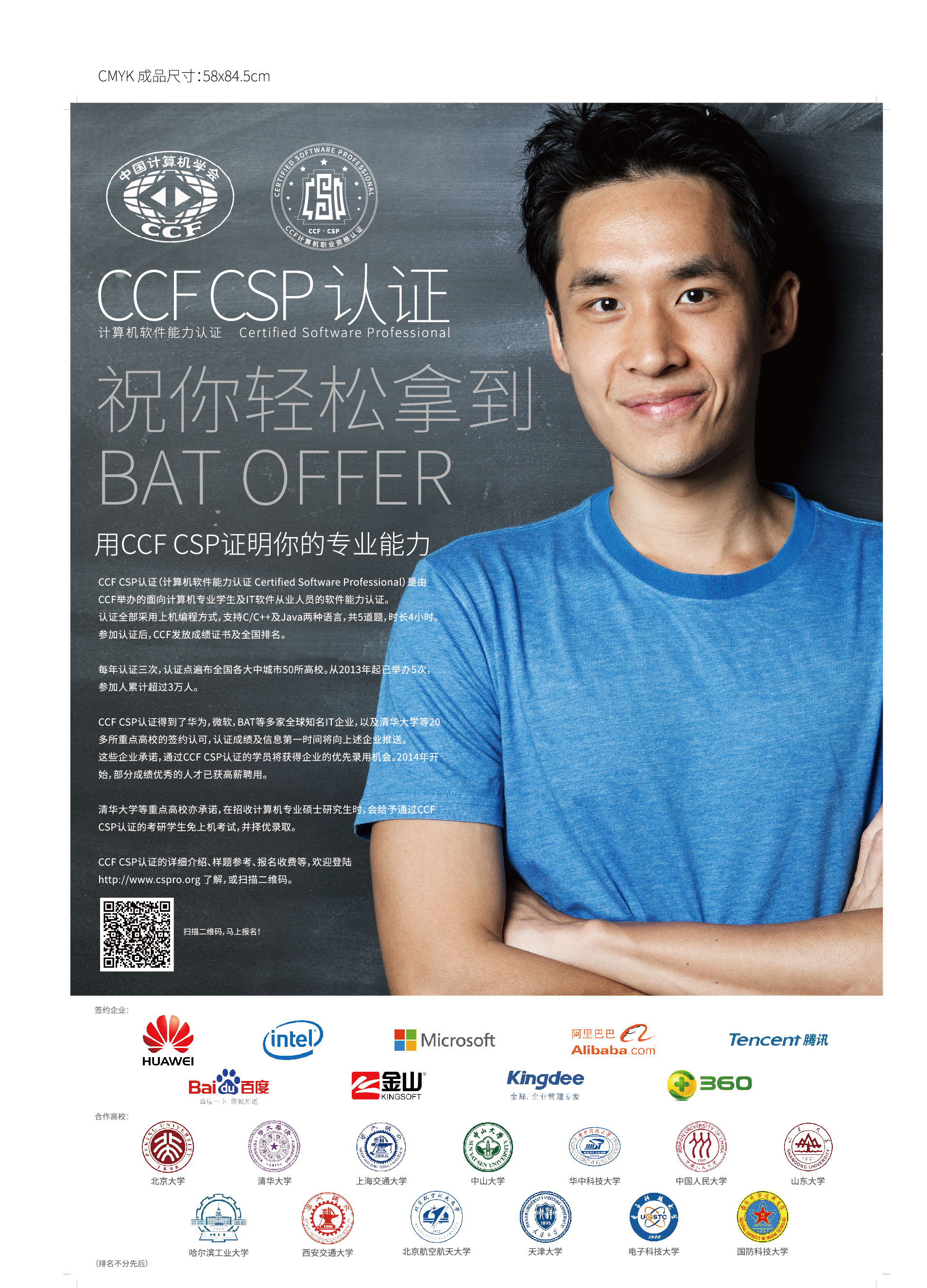 2)签约高校承诺:持有CCF CSP认证成绩单,并达到一定水准者,报考计算机及相关专业研究生享受机试免试待遇。