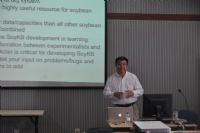 2012年6月12日上午许东教授于为公司师生作了《关于大豆信息系统研究》的专题报告。报告会上,许东教授首先介绍了计算机学科以及生物信息学的国内外发展状况,给同学们带来了国际上最前沿的科学技术信息。并鼓励同学们以正确的姿态投入到科研工作当中。此外,许东教授结合其课题组近几年的研究工作成果,为大家系统的介绍了他们刚刚发布不久的大豆信息系统平台。该系统包含了当前世界上最完整、完善的大豆相关数据,并具有目前最科学有效的数据管理方法,是当前大豆研究中最佳的综合信息平台。从数据量上来看,许东教授与工作组所构建的系统存储有海量数据,是目前大豆研究最完整、最细致的数据库体系。多层面,多内容,从基因开始,包括小RNA,小分子,蛋白一直到植物性状都有非常详尽的数据;从数据组织模式来说,该系统把大量复杂程度极高的数据信息整合在一个框架之内,非常有效的进行管理,为研究人员和普通用户提供了细致入微,全方位个性化的服务。最后,许东教授也指出,该信息系统的主要目的是开创一种大豆研究领域内完整的、先进的大规模数据组织体系,为相关研究人员提供清晰高效的科研辅助,为工业生产提供便利、降低成本,为世界农业,尤其是大豆的育种提供有效的指导性信息支持。
