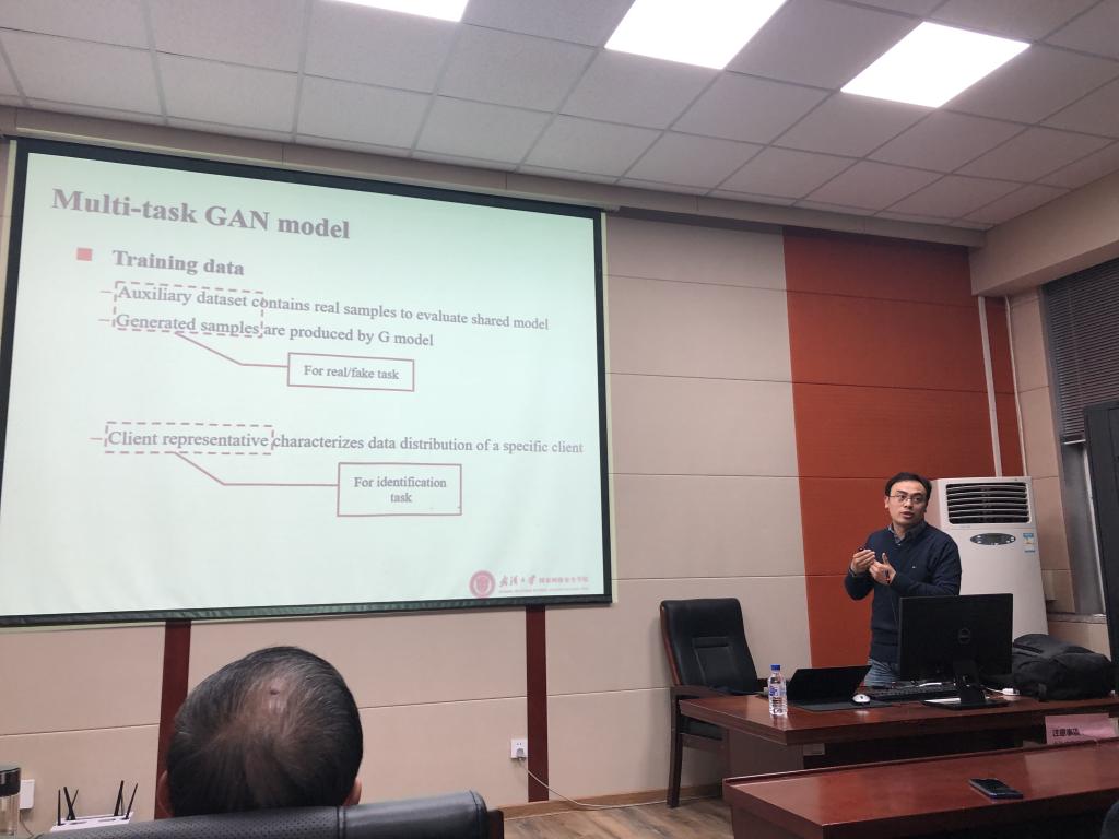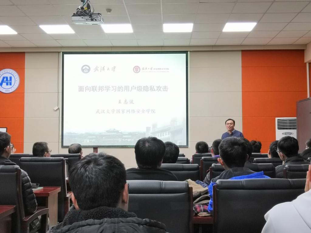 2019年11月14日下午,武汉大学王志波教授应EMC易倍邀请,在计算机楼A521作了题为“面向联邦学习的用户级隐私攻击”的学术报告。