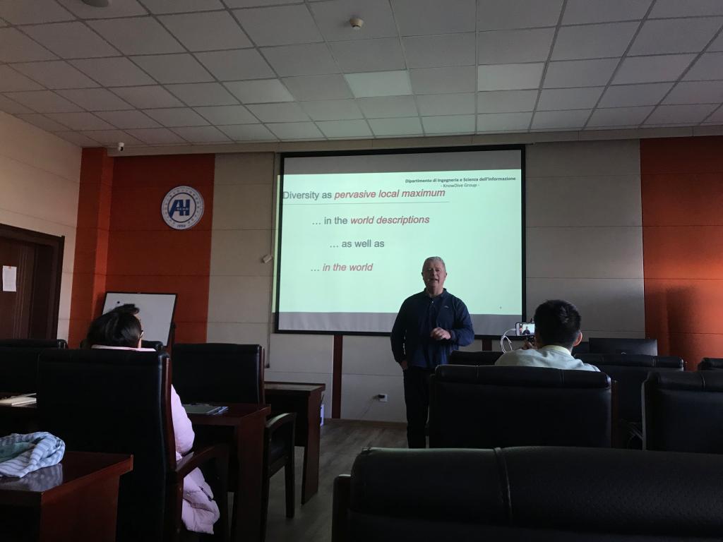 2019年11月28日13:30,Fausto Giunchiglia 教授应EMC易倍邀请,在计算机楼A521作了题为“生成可共享的特定领域知识图谱”的学术报告。