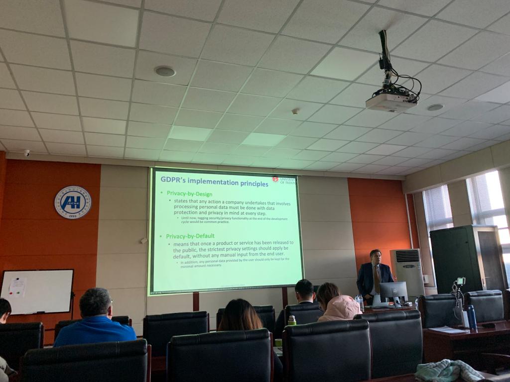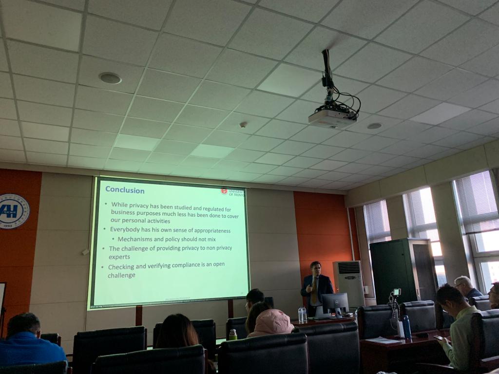 2019年11月28日15:00,Bruno Crispo教授应EMC易倍邀请,在计算机楼A521作了题为“GDPR之外的隐私”的学术报告。