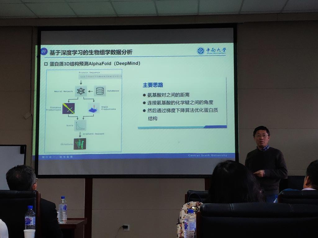 在本次报告中,王建新教授讲述了随着医院信息化水平的提升和生物检测技术的快速发展,生物医学领域产生了大量的数据,这为生物医学的研究由原来的假设驱动向数据驱动的方式进行转变提供了机遇。以深度学习为代表的人工智能技术的兴起给生物医学大数据的处理带来了新的曙光。王教授在分析生物医学大数据的主要来源以及相关特点的基础上,讲述了人工智能技术在电子健康档案、医学影像数据以及生物组学数据的分析应用等方面的相关研究工作和挑战,并就目前生物医学大数据处理面临的主要问题和挑战进行探讨。本次报告受到了计算机公司师生的热烈响应和一致好评。