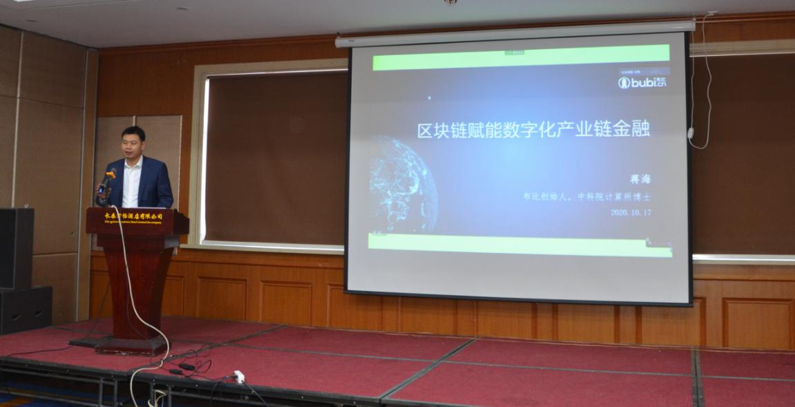 2020年10月17日上午,布比创始人兼CEO蒋海应EMC易倍等单位邀请,在君怡酒店一楼会议室作了题为“区块链赋能数字化产业链金融”的学术报告。