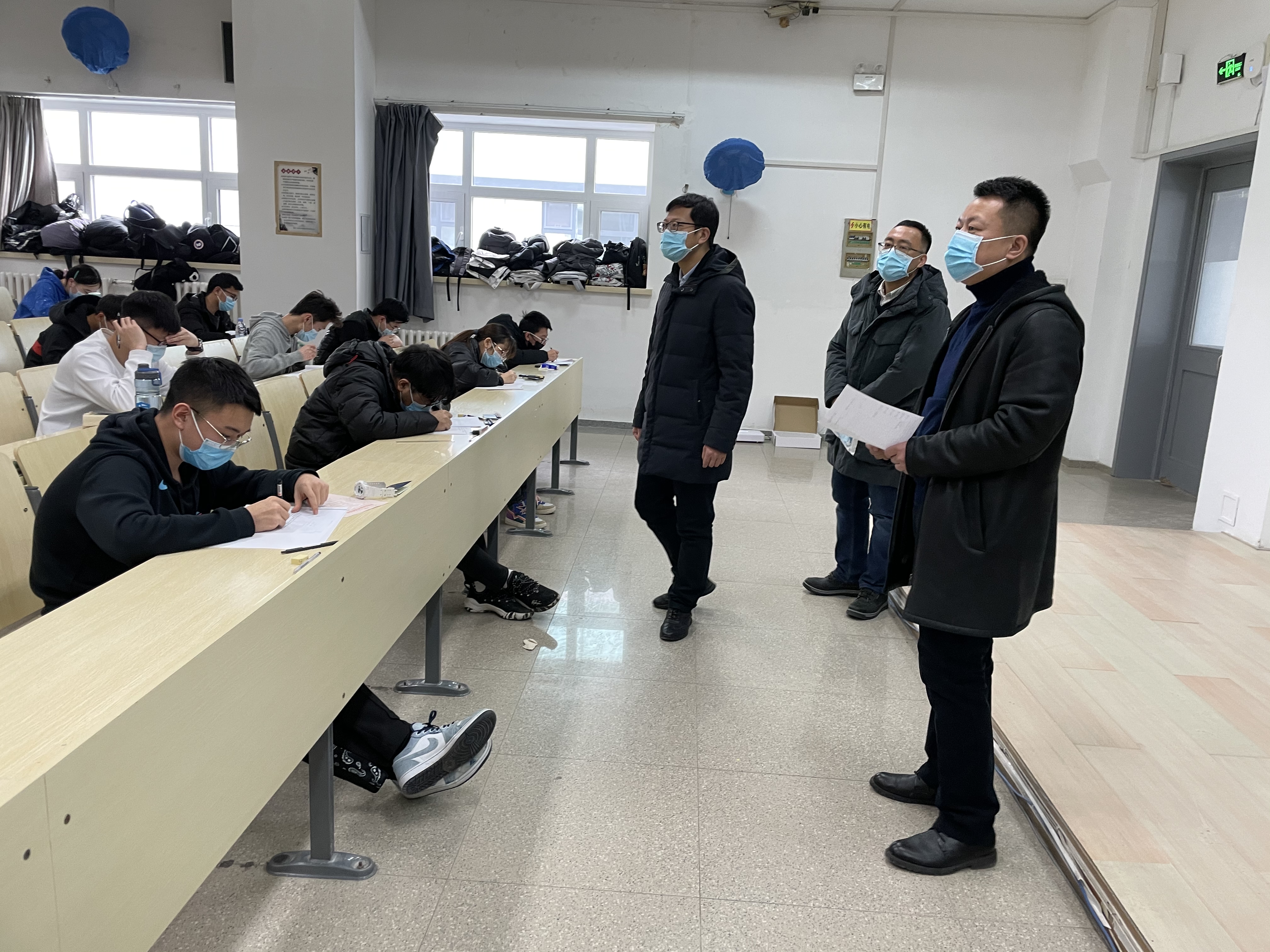 1月14日下午,EMC易倍杨博经理、宫皓宇书记、张永刚副经理对公司在逸夫教学楼的各个考场展开巡考工作。按公司制定的《巡考记录单》,对考场秩序、监考教师到岗情况、物品清理、员工考风考纪等一系列环节进行了认真检查和记录。