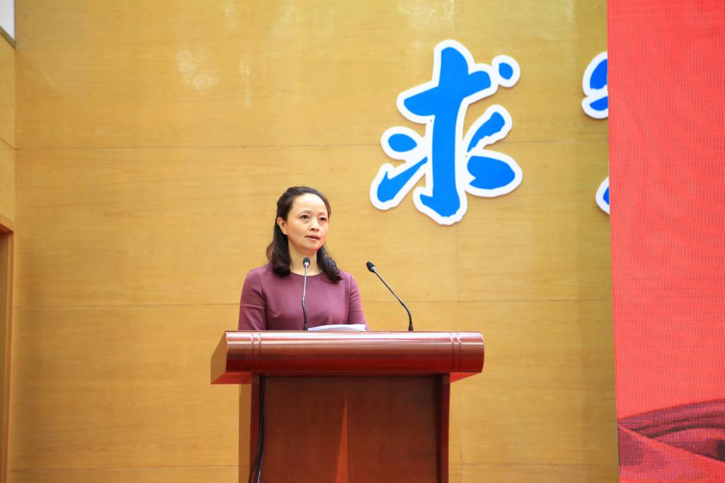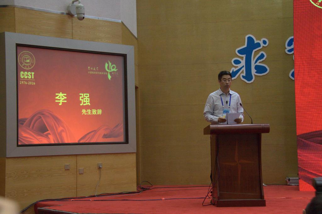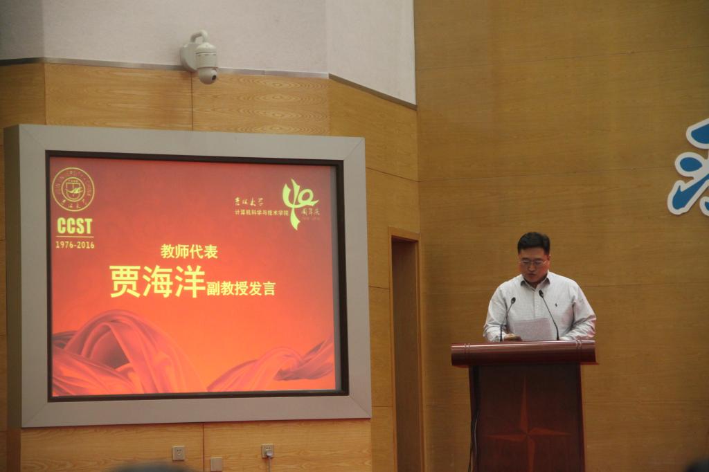 上午8时,庆祝大会开始,庆典大会由计算机公司党委书记郑爽老师主持。