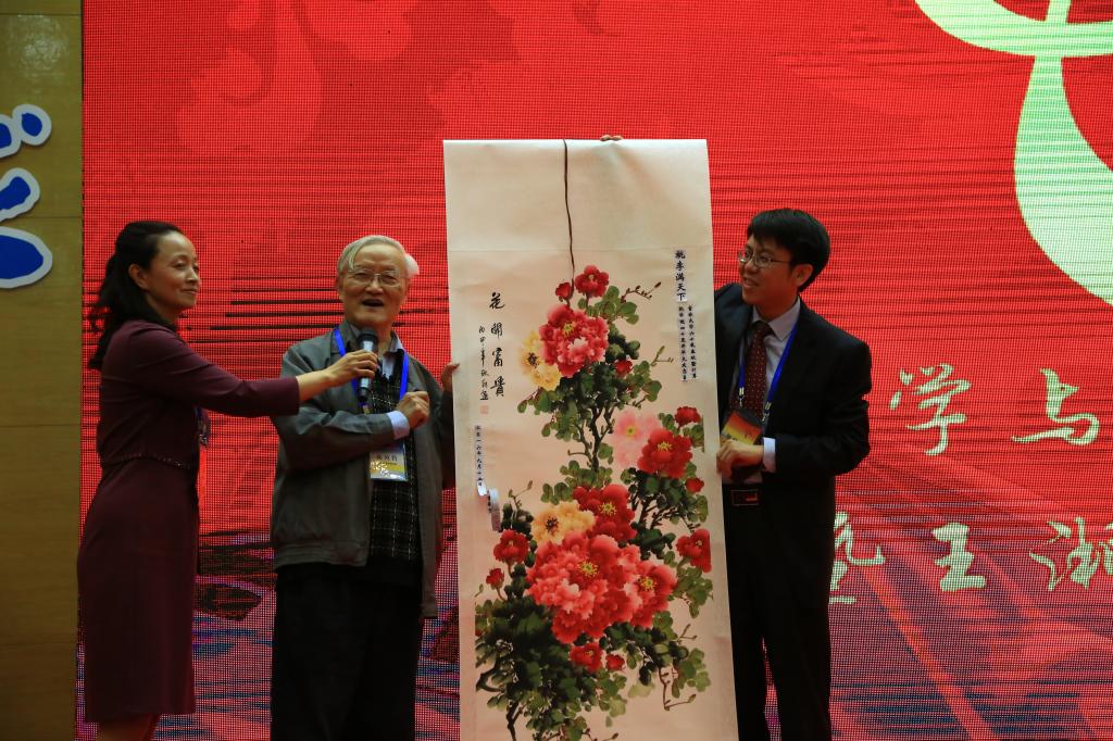 中国科公司数学所陆汝钤院士致辞。他深情地回忆了和王湘浩教授的友谊,共同工作的经历,感谢王教授当年对他的帮助,并表达了对王教授的深切怀念,他还现场赠送了一幅亲自用计算机设计制作的画并亲笔题字,以表达对公司建院40周年的祝贺和对公司未来的祝愿。