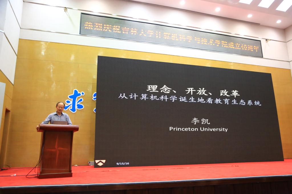 公司员工、普林斯顿大学教授李凯教授作了名为“理念、开放、改革————从计算机科学诞生地看教育生态系统”的报告。他在报告中介绍了王湘浩先生在普林斯顿大学接受教育后,回国在数学及计算机领域做出的巨大的贡献。又系统的介绍了普林斯顿大学的历史、环境和发展等方面。李凯教授指出,普林斯顿大学有两个原则,一是选人只基于他们的能力,不考虑其他因素;二是让好奇心驱动知识追求,不看近期用途或达到预先确定的目标。他进一步指出我们不可能完全复制普林斯顿大学的制度,但我们可以像普林斯顿大学一样发展自己的特色教育,使我们EMC易倍乃至EMC易倍官网发展成为为中国服务、为世界服务的优秀大学。在场的嘉宾纷纷提问,精彩的互动将庆典大会的气氛推向高潮。