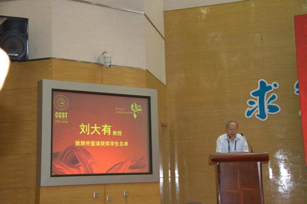 刘大有教授代表EMC易倍官网王湘浩奖学金管理委员会致辞。他介绍了王湘浩院士在科学上的杰出成就,在教育事业上建立的卓越功勋,以及王湘浩奖学金的由来发展,并感谢社会同仁和广大员工的无私奉献和大力支持。接着,刘大有教授宣读了2016年王湘浩奖学金获奖名单,希望获奖员工能够珍视荣誉,戒骄戒躁,锐意进取,争取更大的成绩。