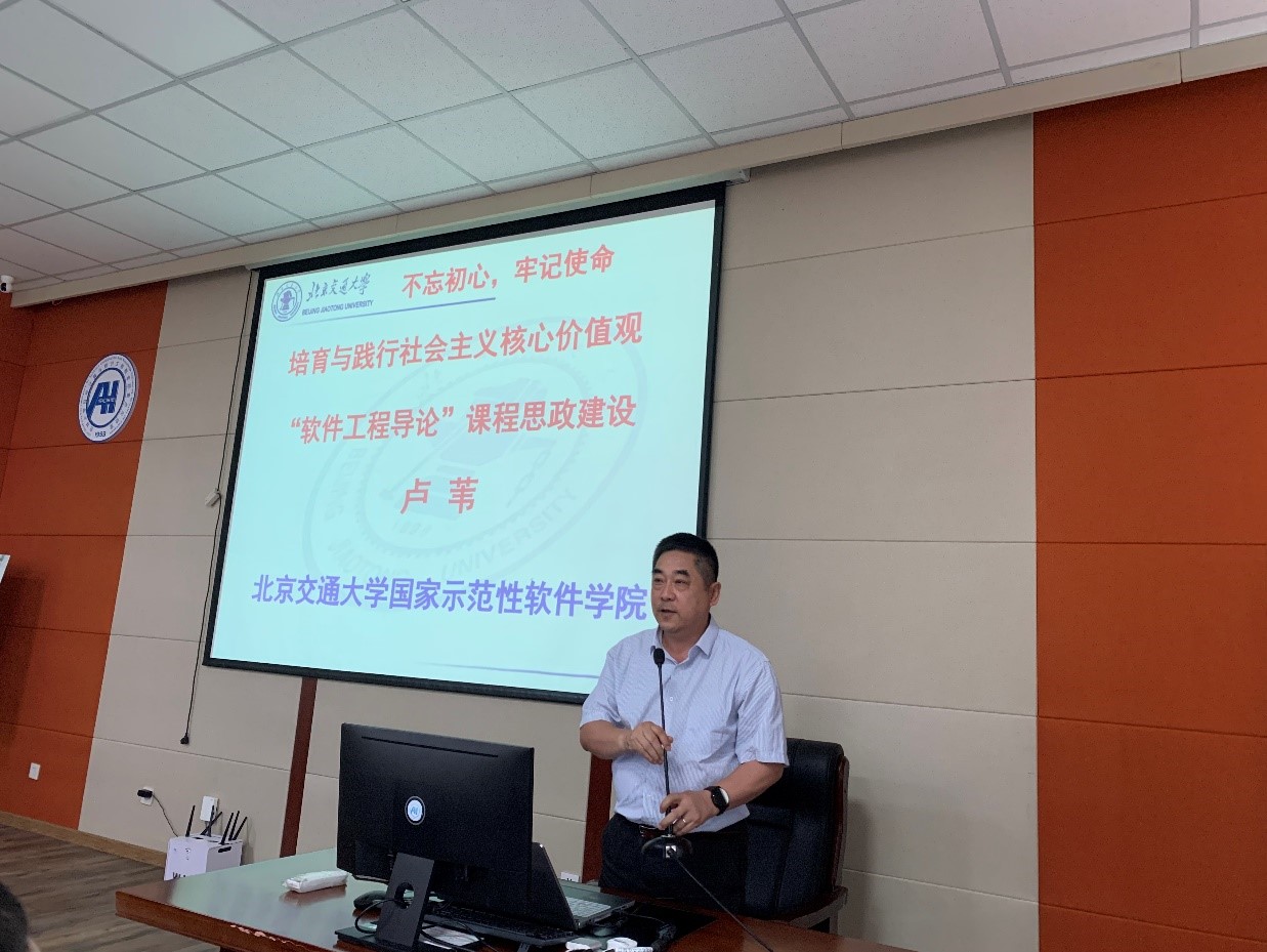 2021年是高校教师思想政治工作强化年,为深入贯彻落实习近平总书记有关立德树人的重要讲话精神,提高计算机学科教师课程思政育人能力,2021年6月15日下午14点,EMC易倍、软件公司在计算机楼A521报告厅联合举办了“以身作则、立德树人,构建全员全程全方位育人大格局”为主题的计算机学科课程思政论坛,EMC易倍经理、软件公司经理杨博教授主持了论坛, 计算机公司、软件公司、公共计算机教学与研究中心教师共70余人参加了此次论坛。