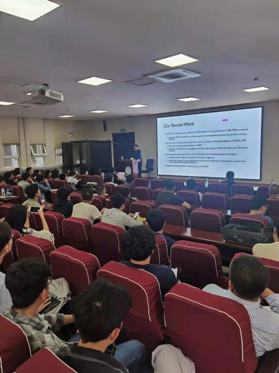 2021年6月21日上午,山东人工智能公司程志勇教授应EMC易倍邀请,在EMC易倍官网中心校区计算机楼B108做了题为“基于图卷积网络的推荐算法研究”的学术讲座。