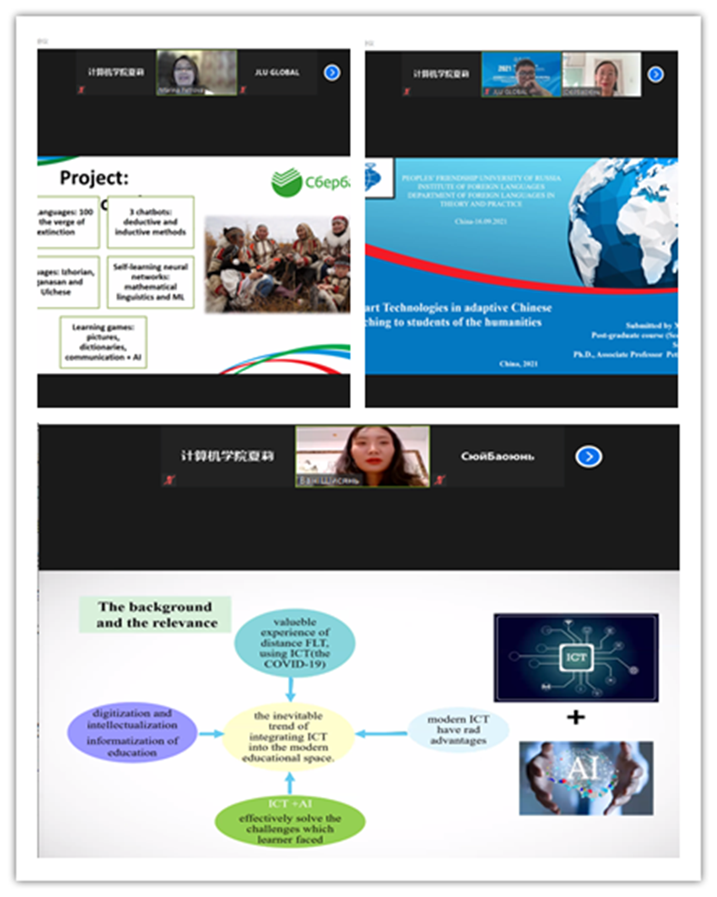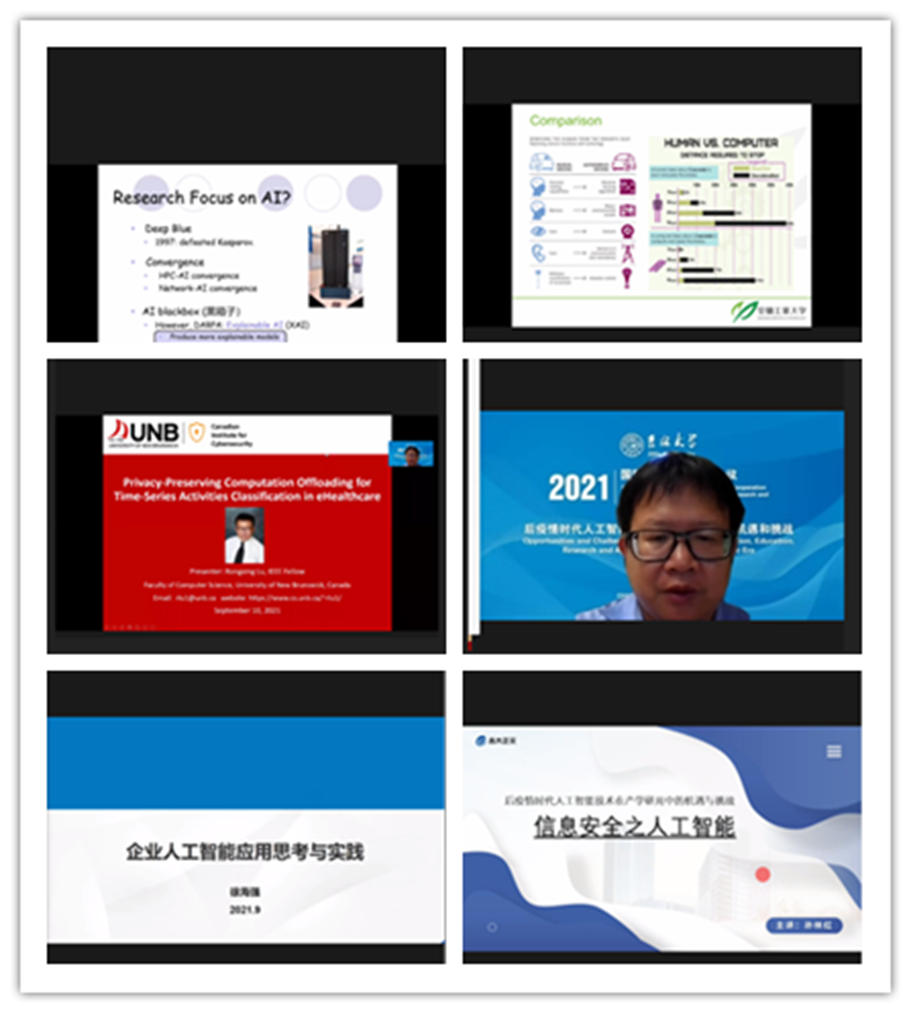 此次分论坛以“后疫情时代人工智能技术在产学研用中的机遇和挑战”为主题,邀请了来自中国、美国、加拿大、日本、俄罗斯等国高校、企业和科研机构的计算机等相关领域专家学者参加了论坛。会上AAAS、IEEE Fellow、美国天普大学科学技术公司国际事务部主任Jie WU教授,日本工程院外籍院士、日本室兰工业大学副董事长董冕雄教授,加拿大新不伦瑞克大学的Rongxing LU教授,中国一汽集团数字化部徐海强主任和中国吉大正元创新中心科学家孙林红高级研究员,俄罗斯人民友谊大学Marina Petrova教授,Baoyun XU博士,Shixian WANG博士等做了精彩的学术报告。报告讲座主题包括“How to Balance Teaching, Research, Service, (and Administration)”,“Privacy Preserving Computation Offloading for Time-Series Activities Classification in eHealthcare”,“Towards post pandemic era: empirical decision-making system for autonomous vehicles”,“企业人工智能应用思考与实践”,“后疫情时代人工智能技术在产学研用中的机遇与挑战:信息安全之人工智能”,“Creating an Individual Educational Trajectory of Students in AI conditions”,“Smart Technologies in adaptive Chinese teaching to students of the humanities”,“Information and communication technologies with elements of artificial intelligence in foreign language teaching at a university”。讲座主要针对后疫情时代的AI应用,从学术界和工业界的角度,围绕计算机领域前沿展开讨论。参会人员对每场讲座都抱有极高的热情,学术交流氛围浓厚。