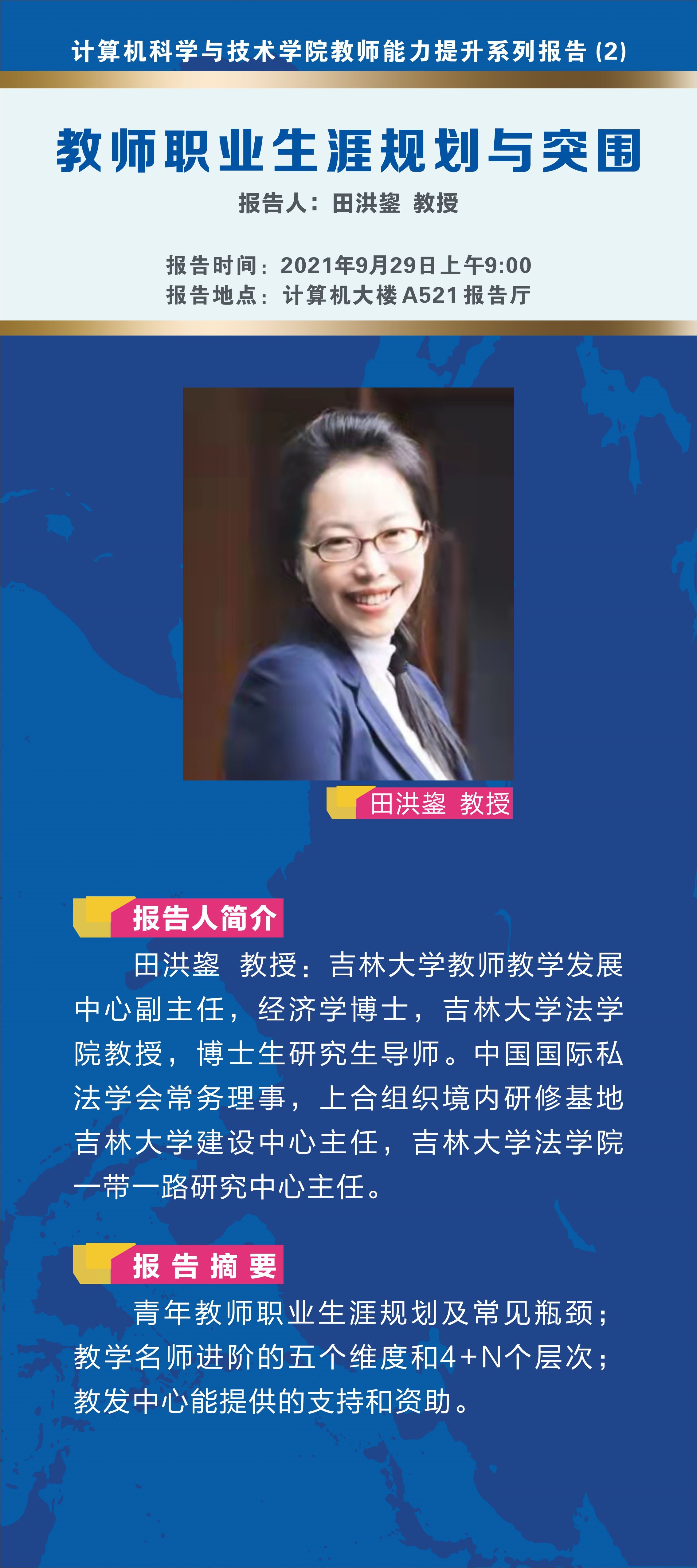 2021年9月29日上午,EMC易倍官网田洪鋆教授应EMC易倍邀请,在EMC易倍官网中心校区计算机楼A521报告厅作了题为“教师职业生涯规划与突围”的专题报告,这是计算机学科教师能力提升系列报告的第二场报告,报告由EMC易倍副经理张永刚教授主持,计算机公司、软件公司共30余名教师参加了此次报告会。