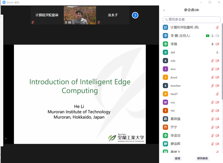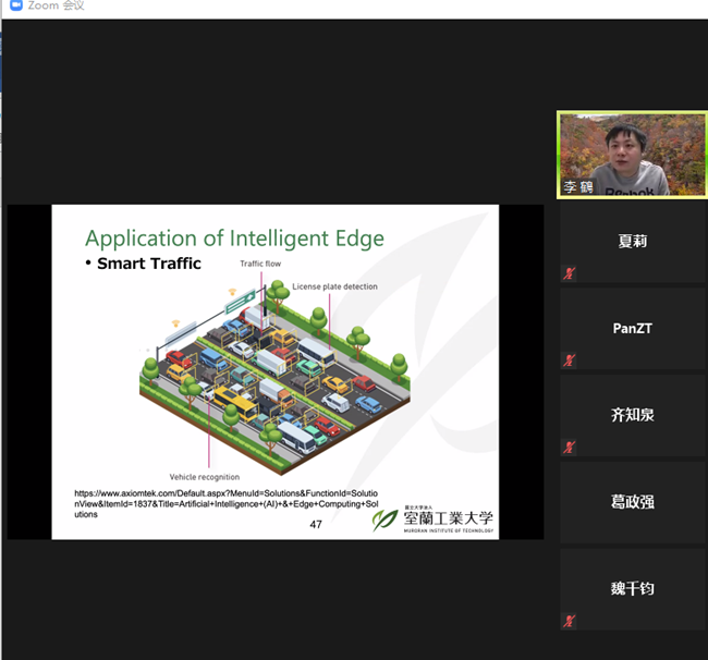 本次讲座,李鹤老师以介绍日本室兰工业大学和室兰工业大学为青年学者提供的良好的学习和科研环境,以及校方为访问学者和职工提供的优厚的奖学金作为开场,随后李老师简单地介绍了智能边缘计算在处理深度学习任务时会采用的几种优化方法以及对应的适用条件。智能边缘计算作为智能物联网的支撑技术,在我们日常生活中的智能家居,智能交通,智能电网等重要领域可提供的高性能,高可扩展以及低能耗的计算服务。以云计算的基本概念作为基础,探讨边缘计算的发展,并介绍了当前智能边缘计算的研究方向和主要应用领域。从云计算的来源,发展以及组成形式作为导引,探讨边缘计算的产生以及重要的研究成果,引入智能边缘计算的研究问题,研究方法以及几种主要的应用。最后,李鹤老师对智能边缘计算的未来,包括需要面对的挑战以及具有潜力的研究方向等方面进行深入的讨论。讲座内容深入浅出,引人入胜。