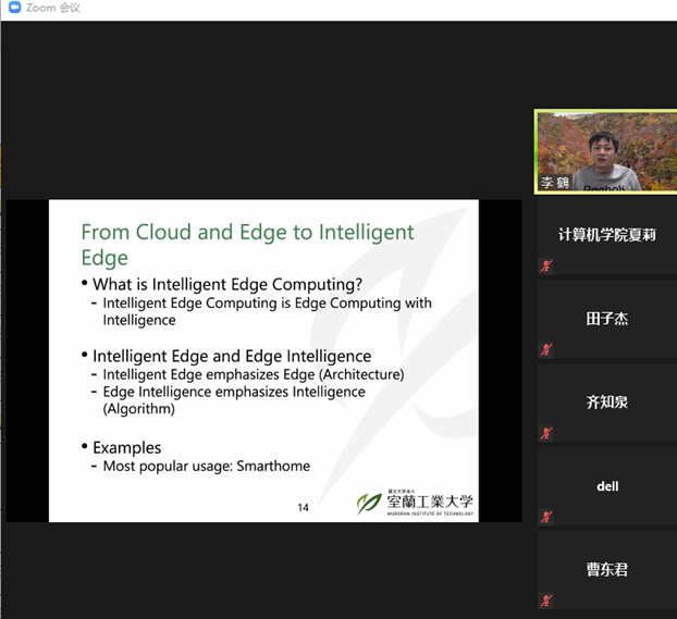 2021年12月14日下午,日本国立大学法人室兰工业大学助理教授,日本文部科学省卓越研究员李鹤老师应EMC易倍邀请,在线上ZOOM会议平台作了题为“从云计算、边缘计算到智能边缘计算”的学术报告,报告由EMC易倍副经理李强教授主持。