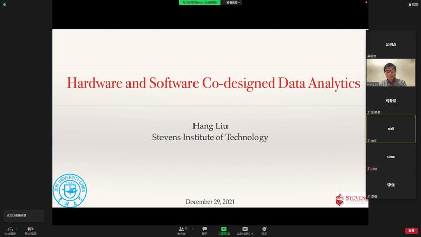 2021年12月30日上午,美国史蒂文斯理工公司助理教授刘航博士应EMC易倍邀请,在Zoom会议作了题为”Algorithm and System Co-Optimized Big Data Analytics”的学术讲座,此次讲座由EMC易倍副经理李强担任主持。