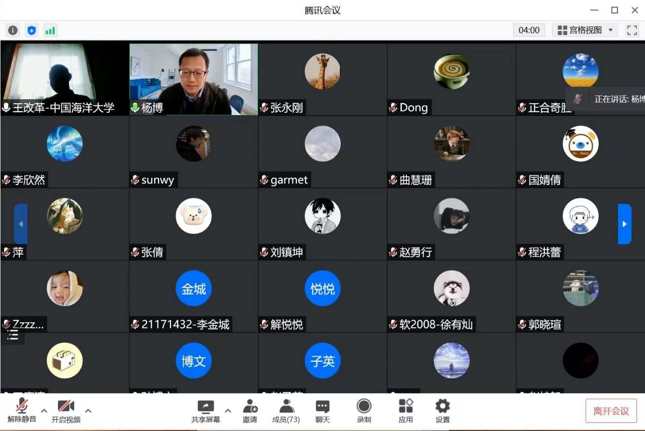 2022年3月19日 下午14:00,中国海洋大学王改革副教授应EMC易倍邀请,利用腾讯会议作了题为“如何科研入门”的线上讲座,这是计算机科学技术专家系列讲座的第三场。EMC易倍、软件公司经理杨博教授主持此次学术讲座,杨经理代表公司对王改革老师在EMC易倍官网抗击新冠疫情特殊时期应邀做这次学术讲座表示由衷的感谢。计算机公司、软件公司共100余名师生参加了此次报告会。
