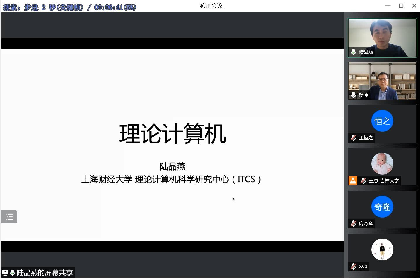 2022年4月16日13:30,上海财经大学陆品燕教授应EMC易倍邀请,利用腾讯会议作了题为“理论计算机”的学术报告。EMC易倍、软件公司经理杨博教授主持了讲座,并代表公司全体师生对陆品燕教授在EMC易倍官网抗击新冠疫情特殊时期应邀做专场讲座表示由衷地感谢。
