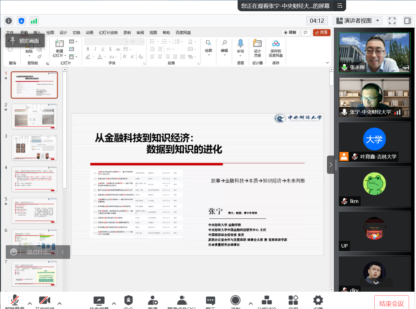 2022年4月22日下午,中央财经大学张宁教授应EMC易倍邀请,以线上会议形式作了题为“从金融科技到知识经济:数据到知识的进化”的学术报告,报告由EMC易倍副经理张永刚教授主持。