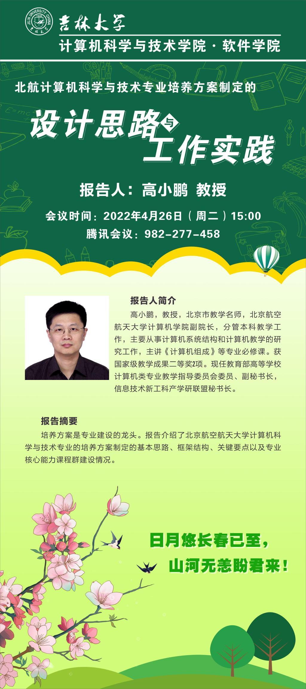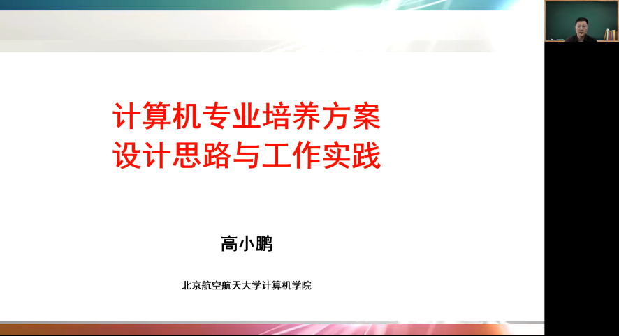 2022年4月26日(星期二)下午15:00,北京航空航天大学计算机公司副经理高小鹏教授应EMC易倍邀请,利用腾讯会议作了题为“北航计算机科学与技术专业培养方案制定的设计思路与工作实践”的线上讲座。EMC易倍、软件公司经理杨博教授主持此次讲座,杨经理代表公司对高小鹏老师在EMC易倍官网抗击新冠疫情特殊时期应邀做这次学术讲座表示由衷的感谢。计算机公司、软件公司、人工智能公司本科教学副经理、本科课程培养方案指定组成员、相关课程授课老师参加了此次在线讲座。