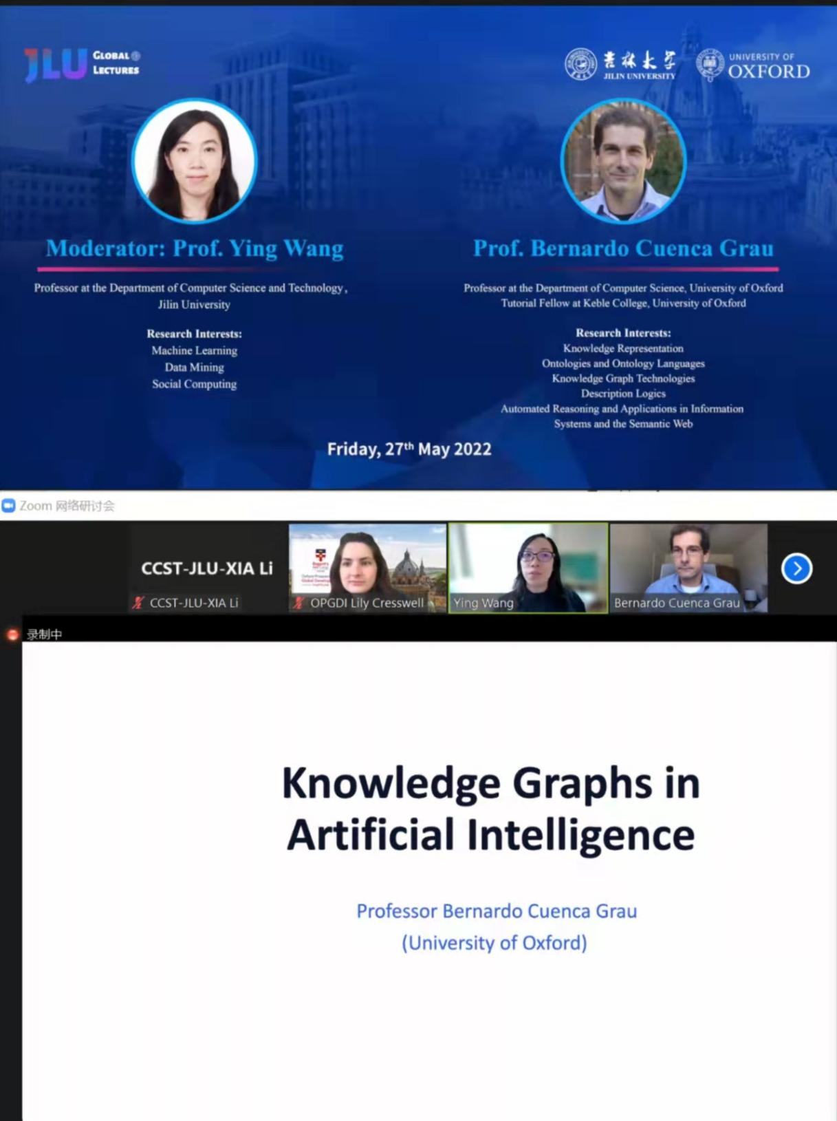 2022年5月27日晚,英国牛津大学计算机科学系教授Bernardo Cuenca Grau应邀做客云端“EMC易倍官网-牛津大学前沿学术论坛”,以“Knowledge Graphs--Challenges and Opportunities”为题为公司师生带来了一场精彩的学术讲座。本次活动由EMC易倍官网国际合作与交流处主办,EMC易倍协办,EMC易倍王英教授出席并主持了讲座。