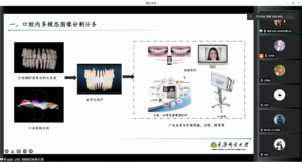 2022年6月17日,重庆邮电大学赵悦副教授应EMC易倍邀请,利用腾讯会议作了题为“数字化口腔关键技术的研究与应用”的学术讲座。