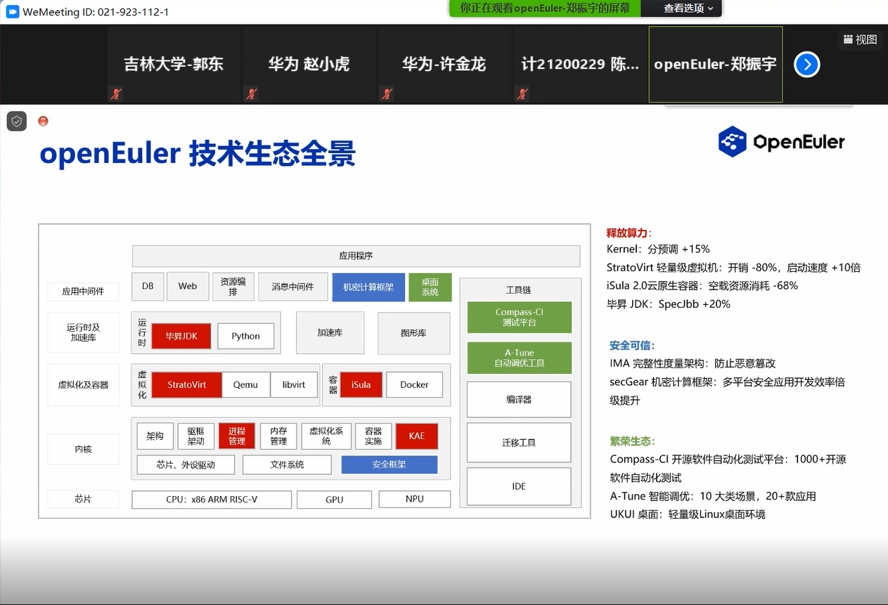 在实践教学线上课堂上,华为工程师首先介绍了国产数字基础设施操作系统—openEuler的基本情况,给出了基于openEuler开源社区的Linux技术学习新方法。接着以 openEuler 操作系统为开发环境,讲述了如何从 0 到 1 构建出一个属于自己的 Linux 操作系统。