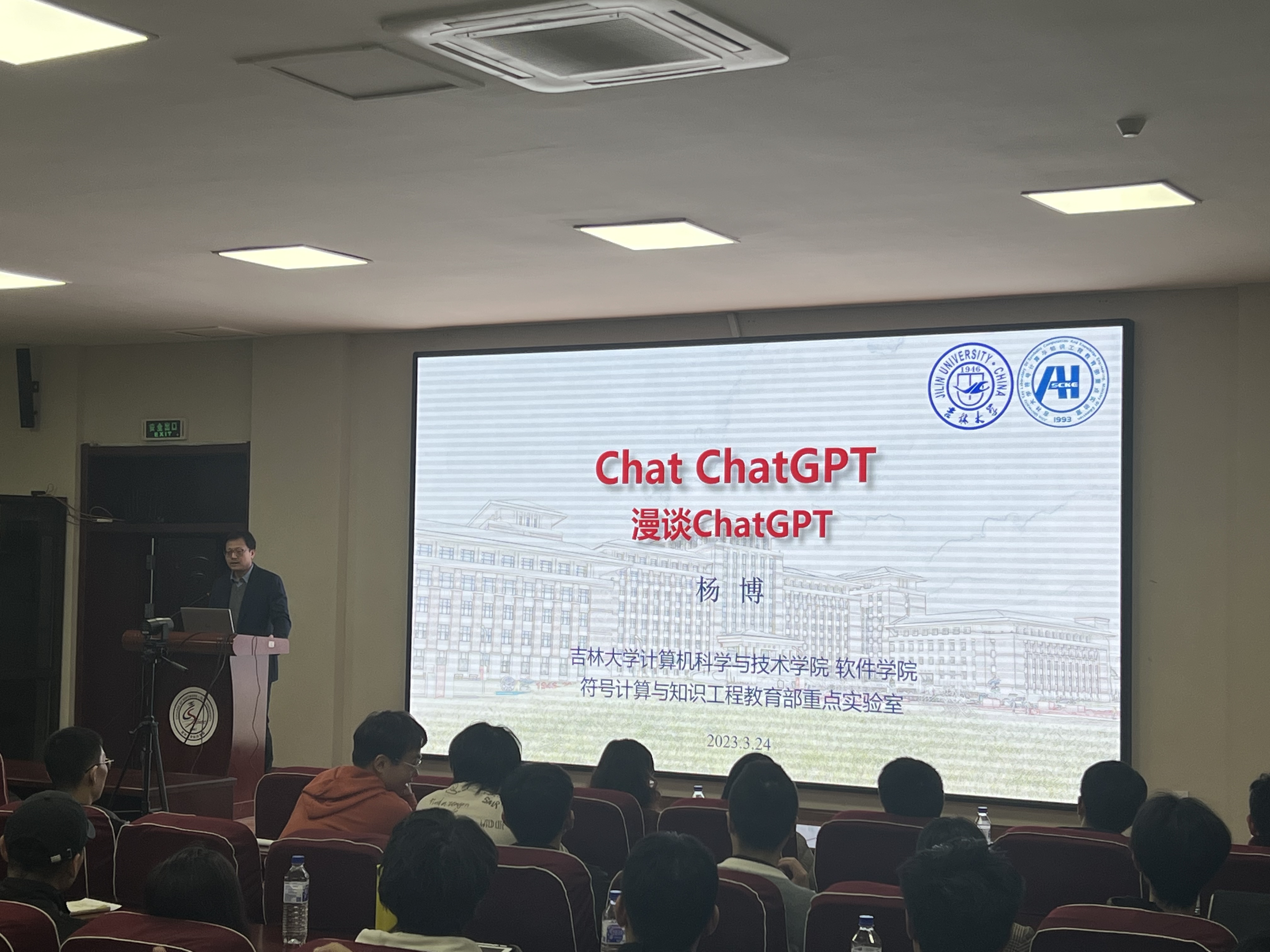 3月24日晚上,EMC易倍、软件公司经理杨博教授在王湘浩楼一楼大讲堂为两院员工主讲了题为《Chat ChatGPT》的学术讲座。在长达两个小时的讲座中,杨博经理通过针对性的案例结合人工智能在当下社会中的具体实践,将人工智能的演进史和ChatGPT的现状向同学们生动呈现。