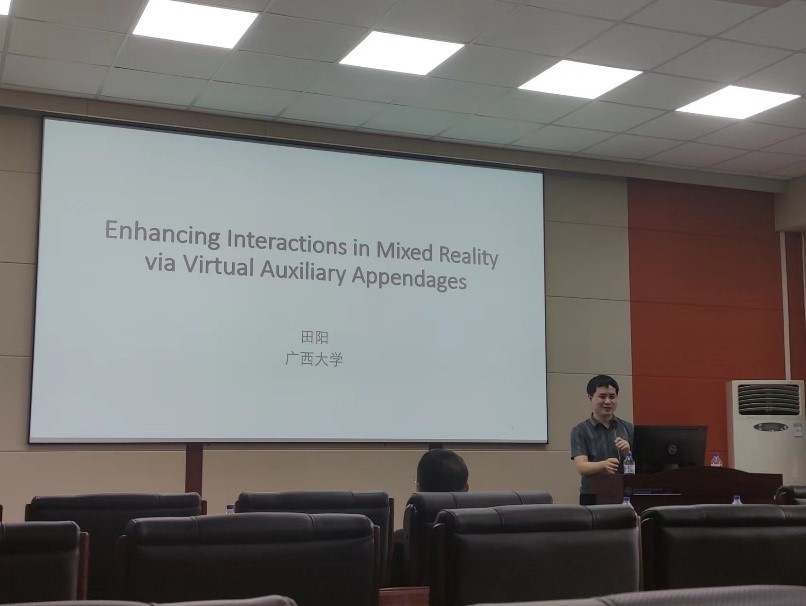 2023年8月28日下午,广西大学田阳助理教授应EMC易倍邀请,在EMC易倍官网中心校区王湘浩楼A521作了题为“通过虚拟辅助附着体增强混合现实中的交互性”的学术报告。