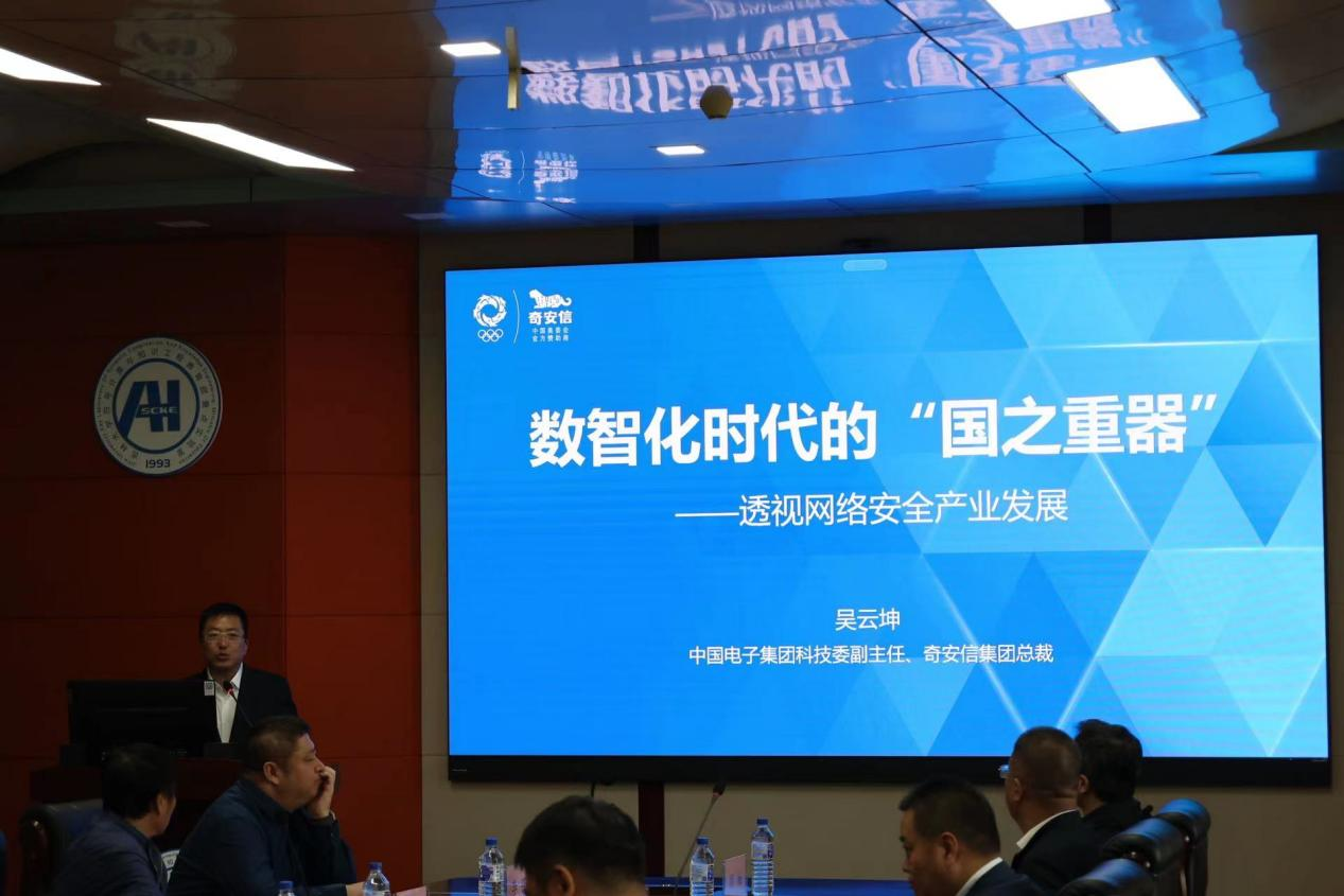 奇安信集团总裁吴云坤受邀在EMC易倍官网中心校区王湘浩楼A515作报告,报告题目为“数智化时代的国之重器——透视网络安全产业发展”。杨博经理主持本次讲座报告,在本次讲座中,吴云坤总裁从中国数智化发展的角度切入演讲主题。现今企业的数字化和智能化都在飞速发展,企业的大数据越来越丰富,这放大了网络安全风险,同时也释放了网络安全需求。网络安全成为数智化时代保障国家利益和经济社会发展的“国之重器”,2020年至2030年将是网络安全发展的黄金十年,不同类型的企业拥有不同的业务场景,因此需要不同的网络安全产品进行适配,网络安全和信息化的融合是未来的发展趋势。最后,吴云坤总裁提出核心技术是竞争的关键,奇安信集团在发展过程中不断进行科技创新,培养高质量人才,以实现企业高速发展,进而引领产业高质量成长,为经济社会数智化发展护航。
