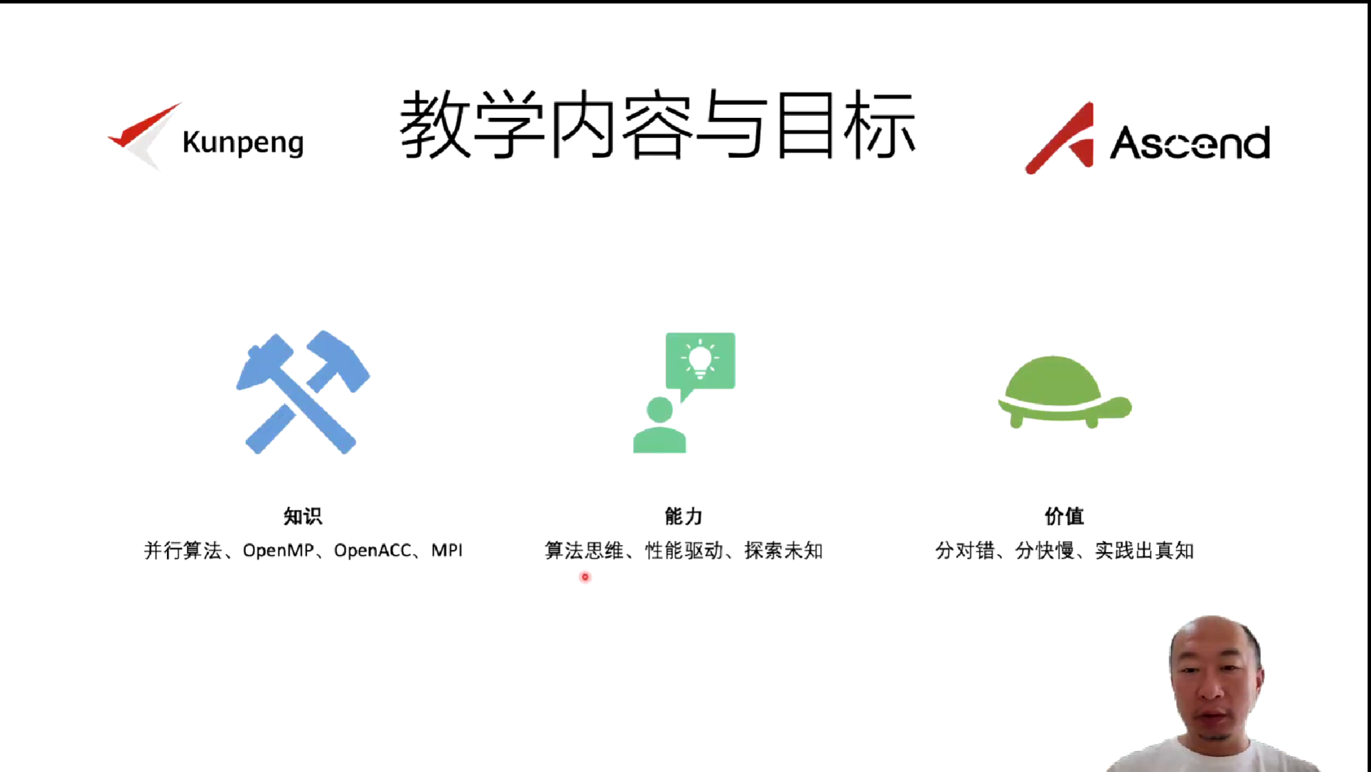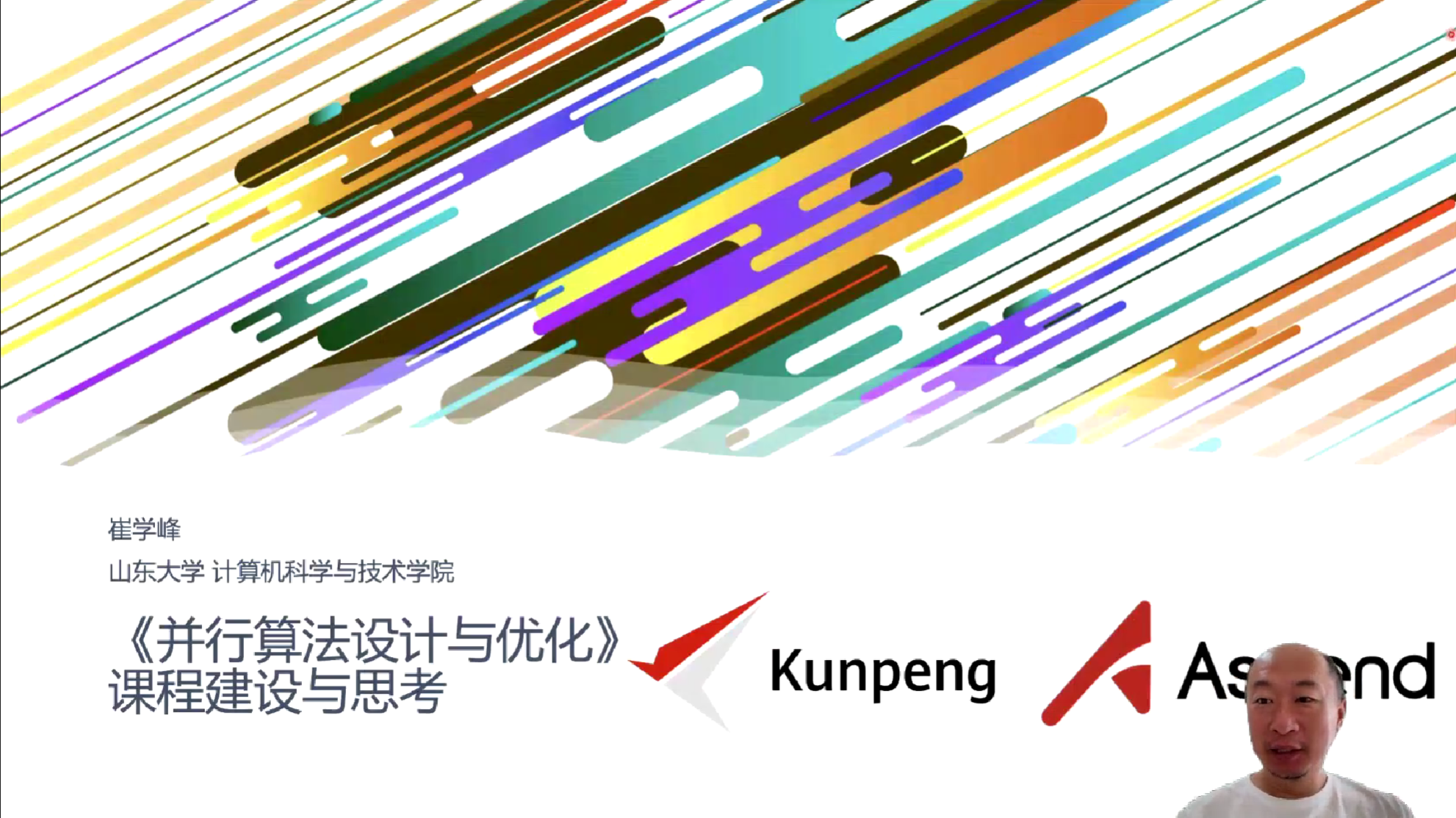 讲座开始后,崔学峰教授首先介绍了《并行算法设计与优化》这门课的起源,然后介绍了在准备这门课的过程中所面临的问题以及采取的方法。首先面临的挑战一为:如何运用人类的线性思维去理解并行发生的事件,对此崔学峰教授提到使用图解算法的方式进行讲解,以展示每个算法的具体过程,可以让员工更好地理解和记忆。第二个挑战为:员工缺乏自主创新的设计一个算法的能力,因此崔学峰教授提到教师应该将讲课重点放在讲述一个算法的设计思路上。第三个挑战为:员工经常将重点放在程序运行的正确性上,而忽略了程序运行的效率,因此在教学过程中要强调算法性能驱动的重要性。最后一个挑战为:对于串行算法,最优的计算复杂度约等于最快的执行速度,然而,在并行算法中理论性能并不等价于实际性能,那么如何理解这种无法消除的差异?对此崔学峰教授提到要去了解差异的来源是什么,要走出舒适圈,学习新知识。综上,崔学峰教授提到要训练员工不光知道算法的知识点是什么,还要了解算法之为是思维是什么。基于性能驱动去做编程,而不是说基于对错。同时要培养员工基于观察探索未知的能力。