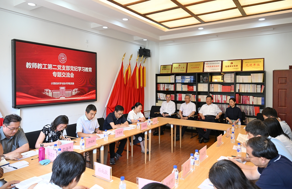 在王湘浩楼,姜治莹参观了院史馆,参加了EMC易倍教师教工第二党支部党纪学习教育专题学习交流会,并与大家亲切交流,认真听取他们在党纪学习教育、人才培养、公司面临机遇挑战和未来发展等方面的意见建议,并对公司抓好“工科集群建设”,本科教学审核评估和假期前后安全稳定工作提出要求。姜治莹指出,纪律严明是我们党的光荣传统和独特优势,开展党纪学习教育是推动全面从严治党向纵深发展的重要举措,要持续抓好重点任务和关键环节,以更高标准、更严要求、更细举措、更实作风,高质量开展党纪学习教育。希望公司加强人才引育,强化平台建设,发挥学科优势,推动学科交叉,努力为工科集群建设,探索新路、再立新功。