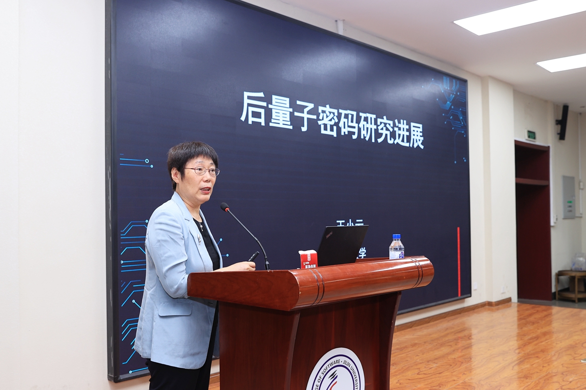 当前广泛部署的公钥密码算法无法抵抗未来量子计算机攻击,基于抗量子计算机攻击数学难题的密码,也称后量子密码,已成为新一代公钥密码发展方向,受到全球高度重视。王小云表示,随着量子计算技术的飞速发展,传统密码体系面临着前所未有的挑战,而后量子密码作为应对这一挑战的关键手段,正成为全球密码学界的研究焦点。这一领域的突破对于保障国家信息安全、维护数字经济的稳定发展具有至关重要的意义。王小云从“后量子密码研究背景”“高维格理论数学难题”“格密码的实用化展望”三个方向,介绍了当前后量子密码全球发展态势,并围绕后量子密码国际主流方向格密码展开,介绍了高维格理论数学困难问题及求解算法、当前格密码算法实用化进程以及全同态加密研究的最新进展,通过丰富的实例和数据为在场师生带来一场精彩纷呈的学术盛宴,并与师生展开互动交流。