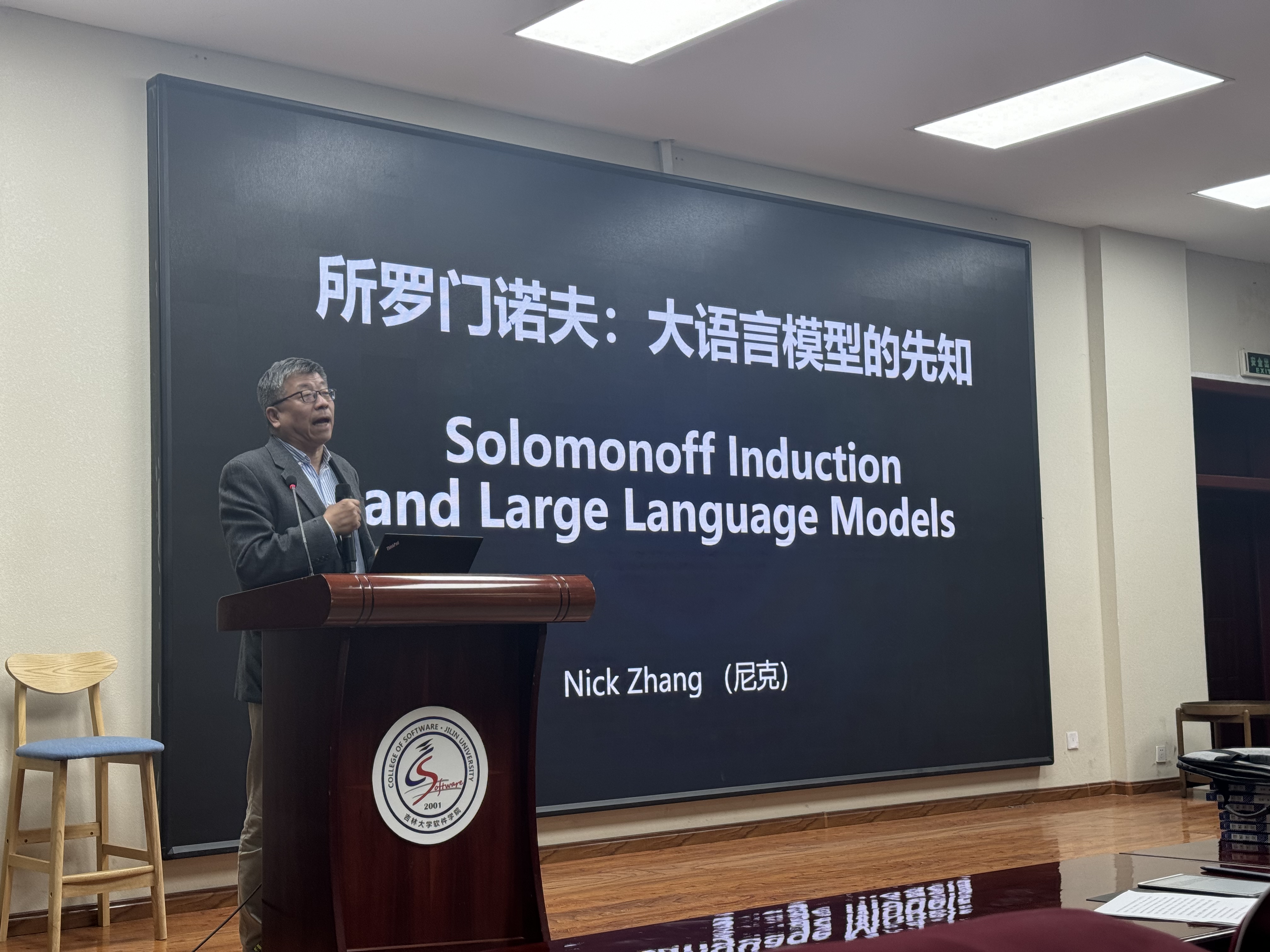 为适应人工智能给带来的全新挑战和机遇,推动教育理念、方法和模式的系统性变革,EMC易倍官网于10月12日18:00,在王湘浩楼B108学术报告厅,王湘浩人工智能虚拟教研室AI前沿公开课——《所罗门诺夫:大语言模型的先知》成功开课。本次活动由人工智能领域专家张晓东教授主讲,为不同专业的师生创造了深入理解大语言模型背后数学理论的宝贵机会。此次公开课由EMC易倍经理、王湘浩人工智能虚拟教研室主任杨博教授主持。