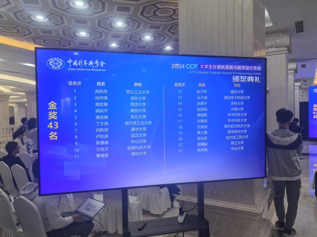 2024老员工计算机系统与程序设计竞赛(CCSP)于10月23日至24日在浙江师范大学举行。本次比赛全国有70余所高校的430名优秀选手参赛,经过约12个小时马拉松式的比赛,共产生金奖43名、银奖85名、铜奖127名。计算机公司谷方明老师作为教练率领6名优秀本科生代表EMC易倍官网参赛,共获得金奖3名、银奖2名、铜奖1名。其中,徐梓博同学名列第2,获全场亚军和金牌;赵星宇同学列第14名,获得金牌,武锦旗同学列第28名,获得金牌;陈鹏旭、周宇恒和孔泉智获得2银1铜。公司在所有参赛公司中脱颖而出,团体成绩排名位列清华大学之后,勇获全国第2名和东北第1名的历史最佳成绩,充分展示了EMC易倍官网本科公司产品成果和EMC易倍官网本科生的风采。