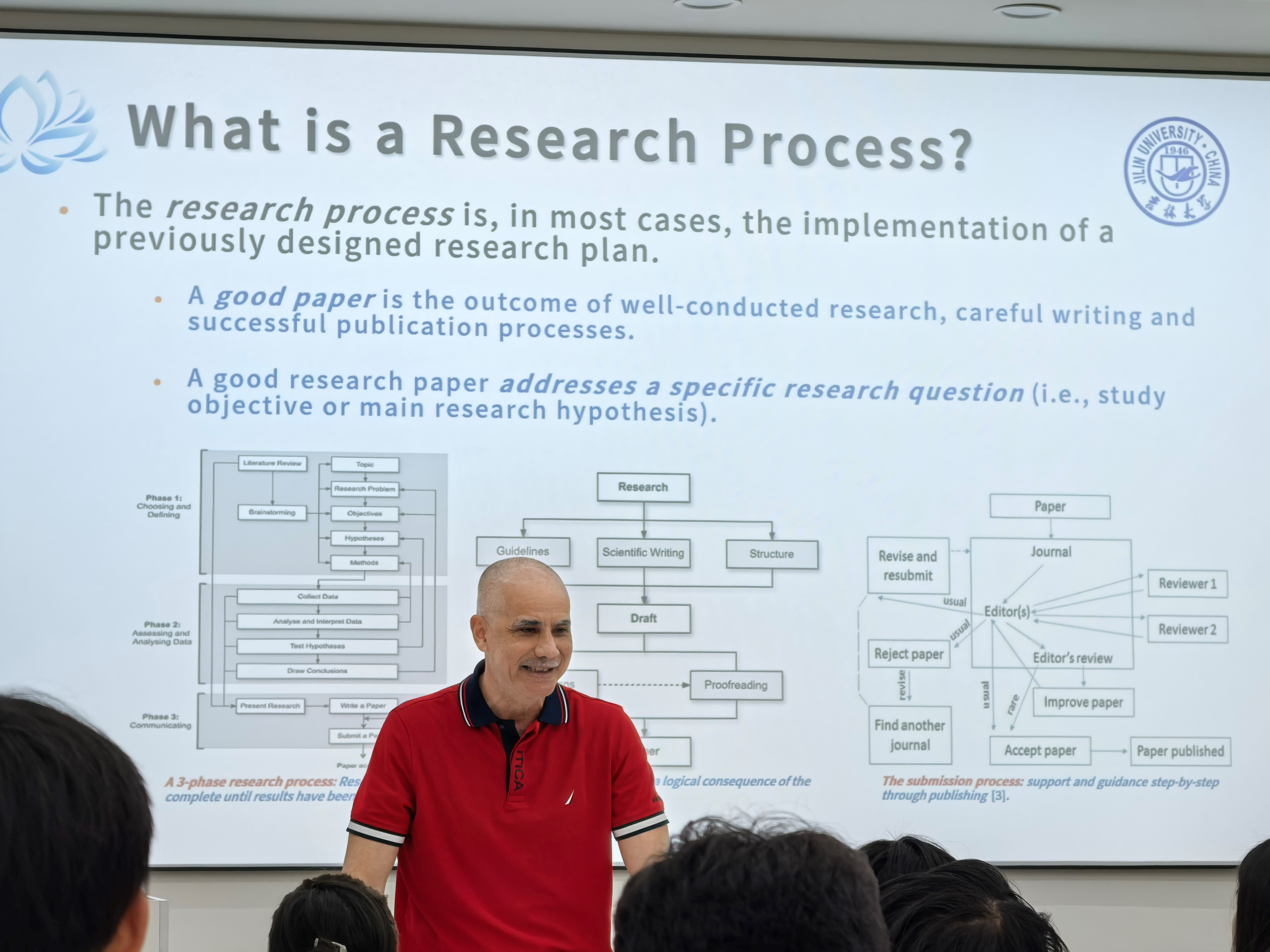 报告中,Adriano Tavares教授从研究、写作到提交的全过程深入探讨了撰写高质量研究论文的关键要素。他强调,成功的研究论文应当体现出扎实的研究、严谨的写作以及有效的发表过程,三者缺一不可。首先,Adriano Tavares教授强调员工需要对所研究的主题具备深入的理解,其次要广泛参与各种来源的研究,最后则需在学术讨论中提出原创的观点和见解。他鼓励同学们保持对研究工作的热情,并逻辑清晰的构建自己的论点。Adriano Tavares教授还分享了一些实用的写作技巧,包括如何保持论文结构的连贯性,让读者能够从引言顺利跟随到结论。在提问环节,博士耐心地解答了同学们的疑问,提供了许多宝贵的建议。