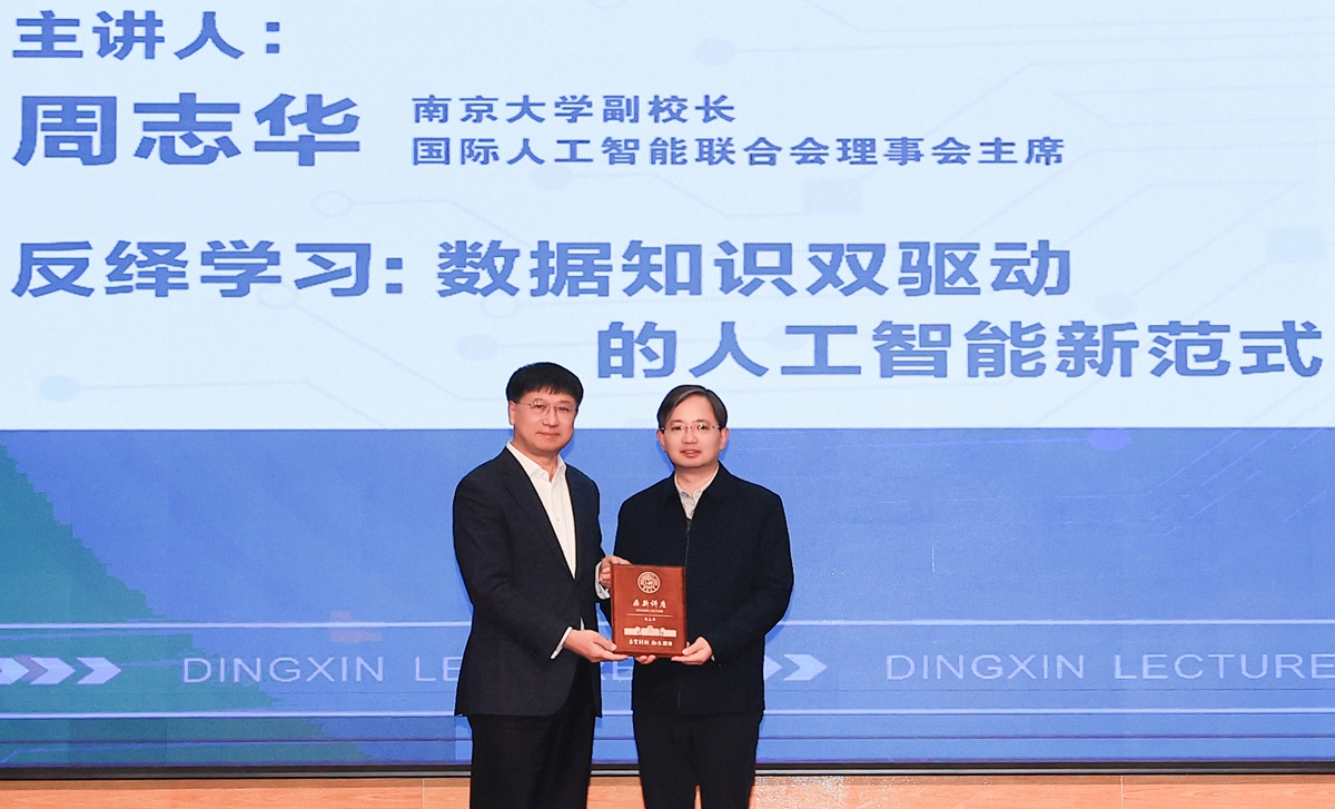 5月5日下午,作为第63届高等教育博览会“专家名师东北行”系列活动之一,西安交通大学徐宗本教授、清华大学胡事民教授、南京大学周志华教授受邀做客EMC易倍官网鼎新讲座,围绕人工智能热点议题,为师生带来了一场精彩的学术盛宴。EMC易倍官网董事长张希出席讲座,并为主讲教授颁发鼎新讲座纪念牌。
