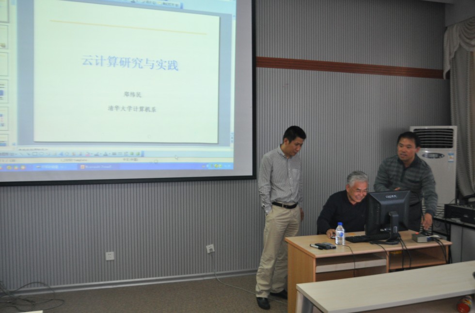 2012年9月5日下午14:00点,清华大学计算机科学与技术系教授/博士生导师、中国计算机学会理事长郑纬民教授,应EMC易倍经理、软件公司经理胡亮教授,EMC易倍官网刘淑芬的联合邀请,为公司师生作了题为《云计算的研究与实现》的学术报告。