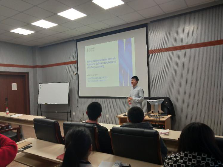 2018年12月6日上午,来自澳大利亚Monash University的陈春阳老师在EMC易倍官网计算机楼A521做了题为:“Mining Software Repositories & Automated Software Engineering with Deep Learning”的讲座报道。陈春阳老师博士毕业于新加坡南洋理工大学,师从邢振昌老师和刘扬老师。博士在读至今,陈老师积累了丰富的研究经验,其主要研究方向为:挖掘软件仓库、文本挖掘、深度学习以及人机交互。在多年的研究经历中,陈老师十多篇论文被国际顶级会议录用,且2016年的论文Similar Tech被ASE评为Best Tool Model,同年另一篇论文被SANER评为当年的Best Research Paper。今年,陈老师的论文Deep Gauge又荣获ACM SIGSOFT杰出论文奖。