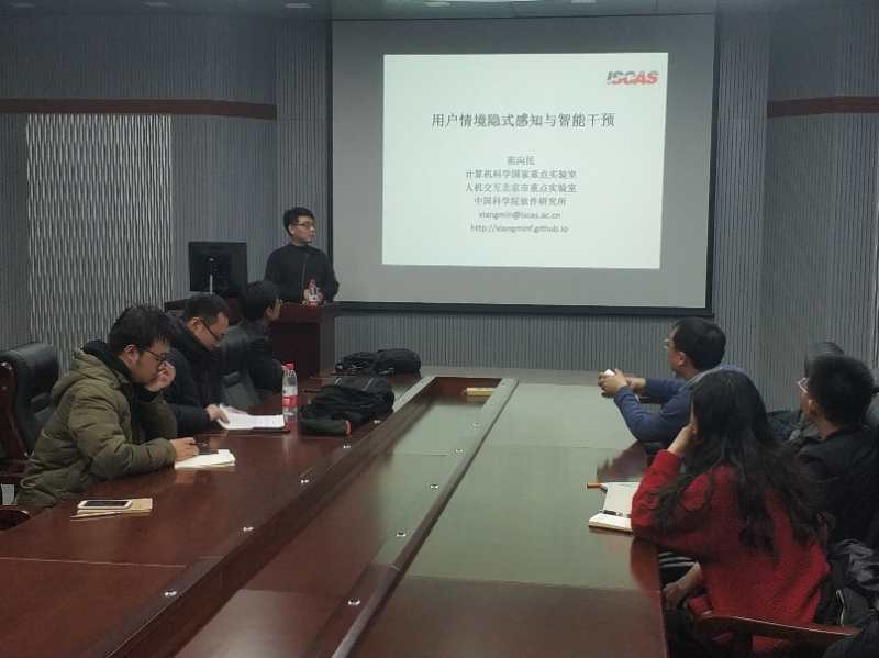 2018年12月22日上午,中科院软件所范向民副研究员应EMC易倍邀请,在计算机楼A515作了题为“用户情境隐式感知与智能干预”的学术报告。