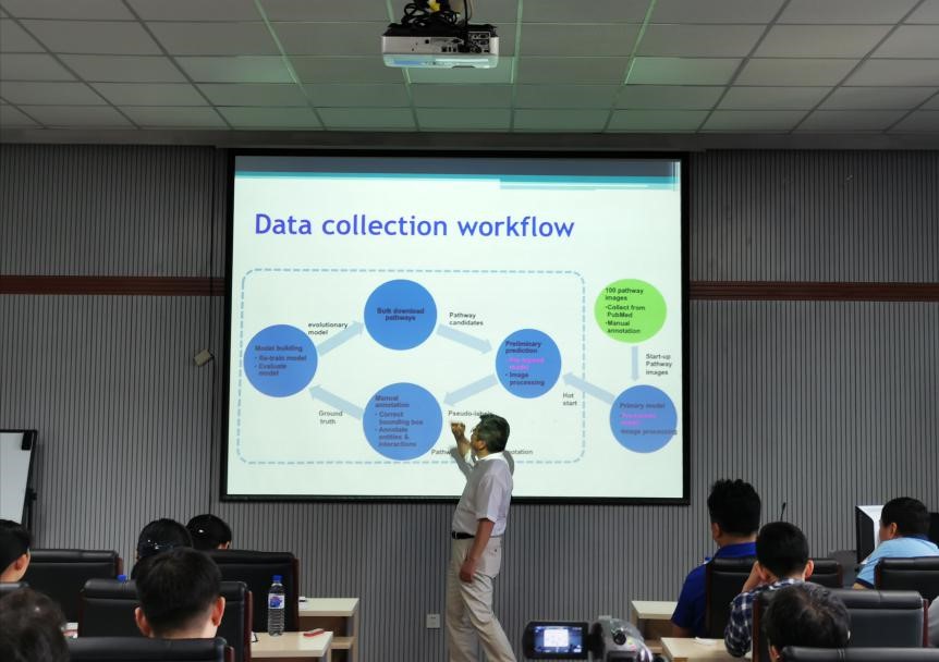 在本次报告中,许东教授首先介绍了生物医学文献的文本表征和通路图表征的优缺点,虽然通路图往往包含了对分子机制的更直接的表征,但目前还没有系统的方法对通路图进行整理。其次,许东教授介绍了他们团队提出的路径管理处理策略,以捕获图中路径实体的位置、名称和相互作用。在报告的最后阶段,许东教授展望了接下来的工作方向,把他们的方法与文本编辑工具结合起来,丰富提取的信息,全面重构通路机制。