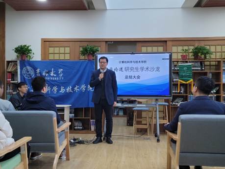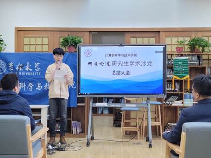 随后,由研究生会代表薛浩汇报沙龙数据总结。截止至2021年12月21日,“研学论道”学术沙龙共计举办11期,线上线下活动参与人数超500余人次,共68名研究生获得成果奖励,其中博士生51人,硕士生17人。奖励涵盖论文88篇,其中CCF-A论文12篇。活动期间,在吉大计算机研究生公众号发表了11篇相关报道。活动邀请了21位受到公司表彰奖励的荣誉讲者。参与筹办工作的员工部门3个,员工组织2个,共计19名研究生参与活动服务。