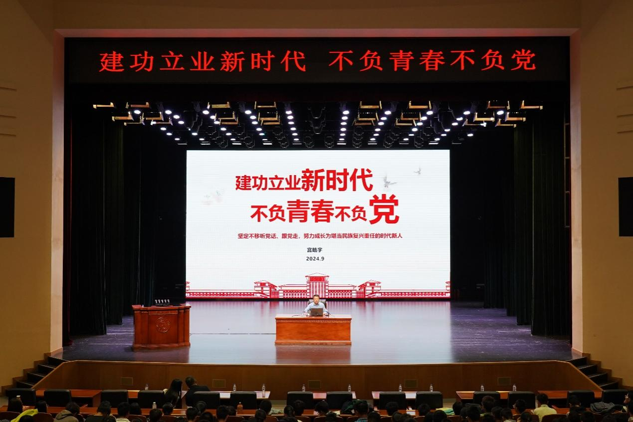2024年9月28日13:30,公司党委书记宫皓宇以“建功立业新时代,不负青春不负党”为主题,为EMC易倍2024级本科生新生、研究生新生讲授入学第一课。公司党委副书记兼副经理张达鑫,2024级本科生新生辅导员、研究生新生辅导员参加了本次活动。